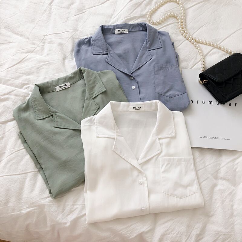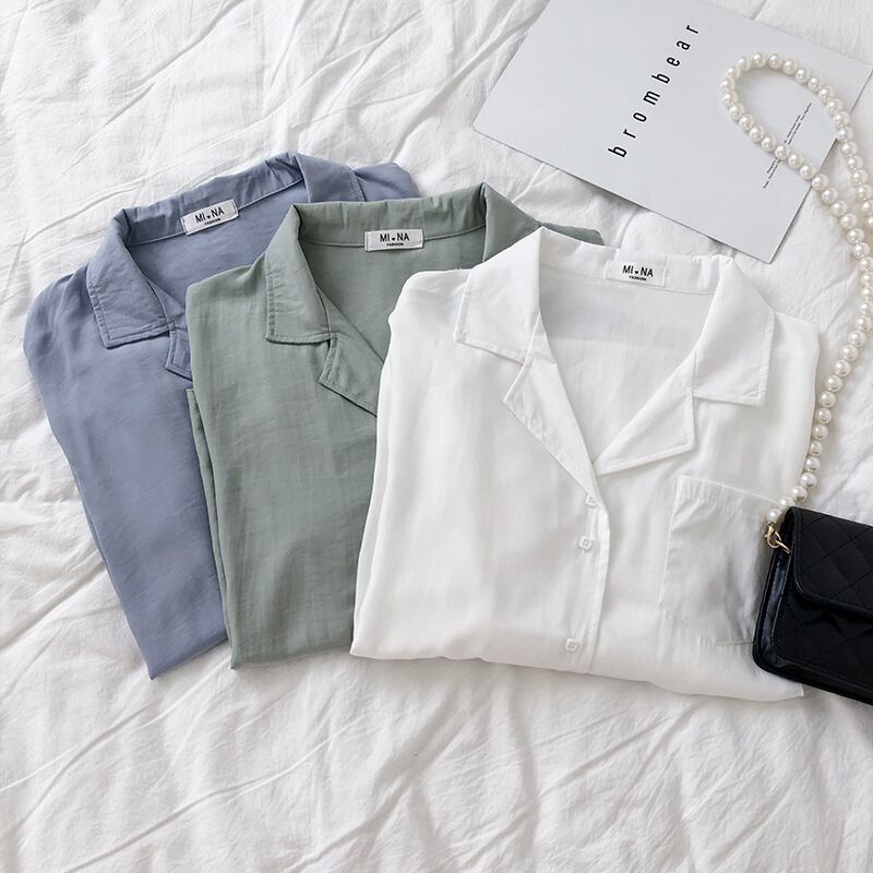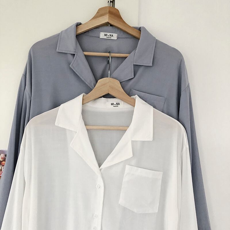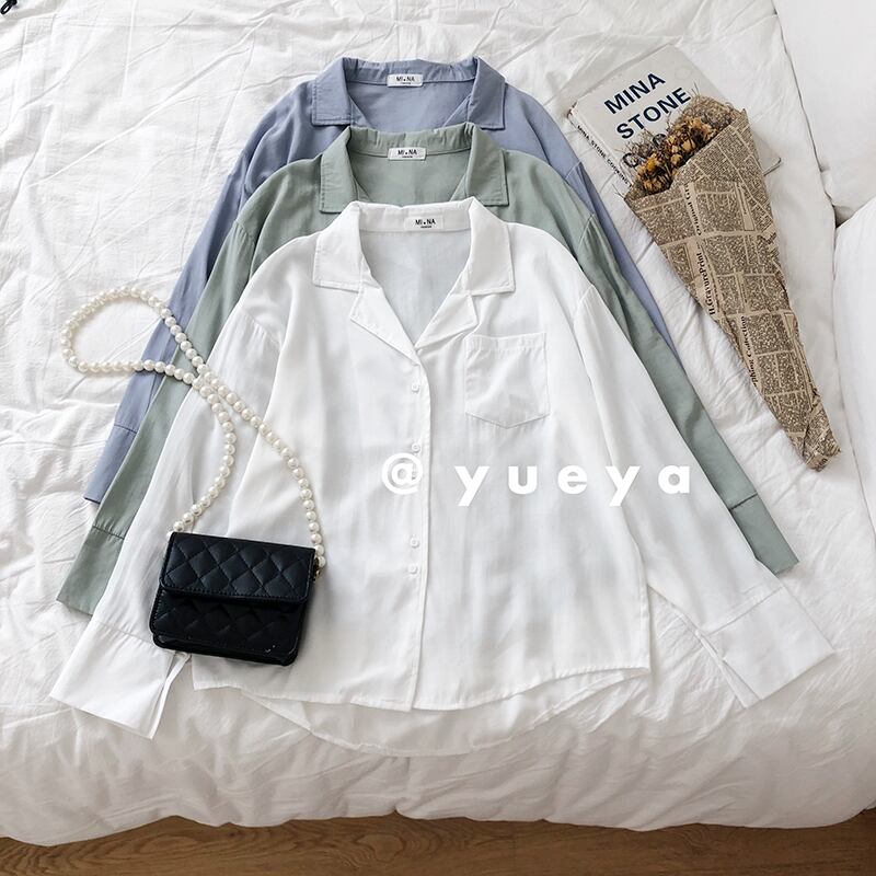 スタンダード長袖スリーブシャツ サマーカラールーズトップス ロング レトロ 夏物 ピュア クレセントシティ95097166056