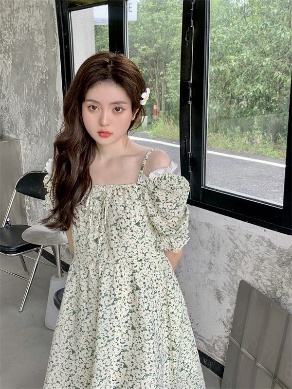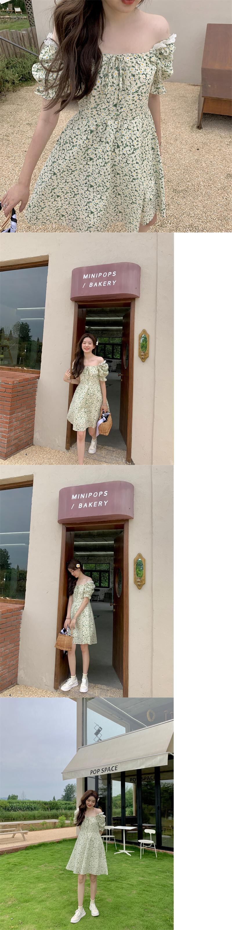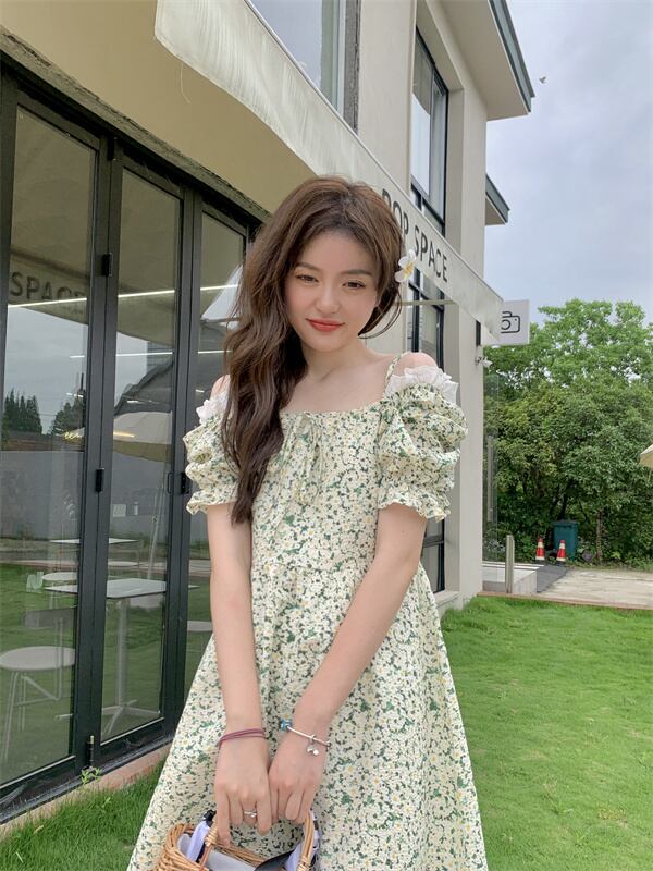 フローラルドレス サマースリーブウェスト薄手Aライン 大人ガーリー スウィート キュート カジュアル 夏物 花柄 クレセントシティ24742898893