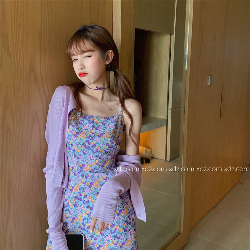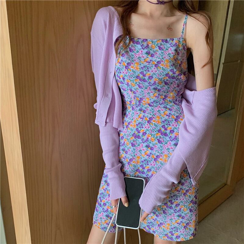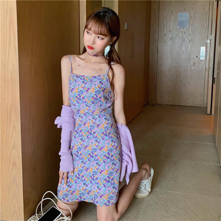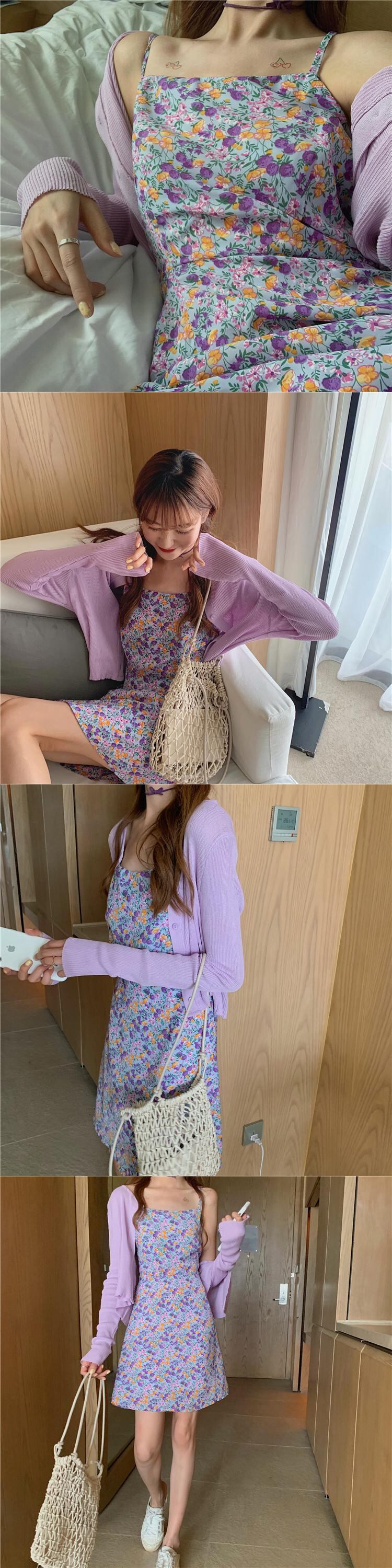 フローラルドレス サマースリムAライン 夏物 花柄 パープル クレセントシティ62395833870