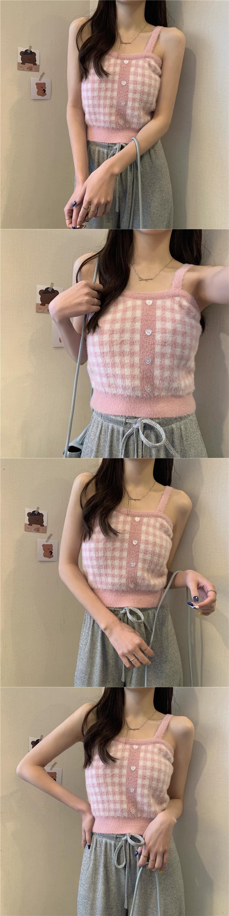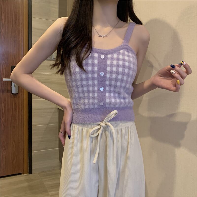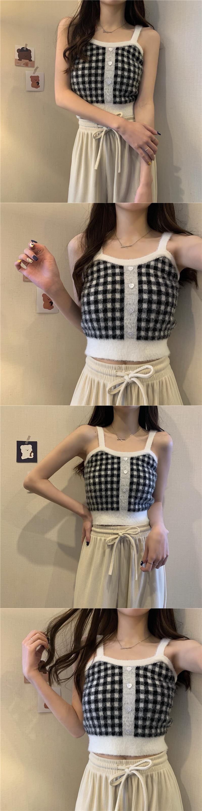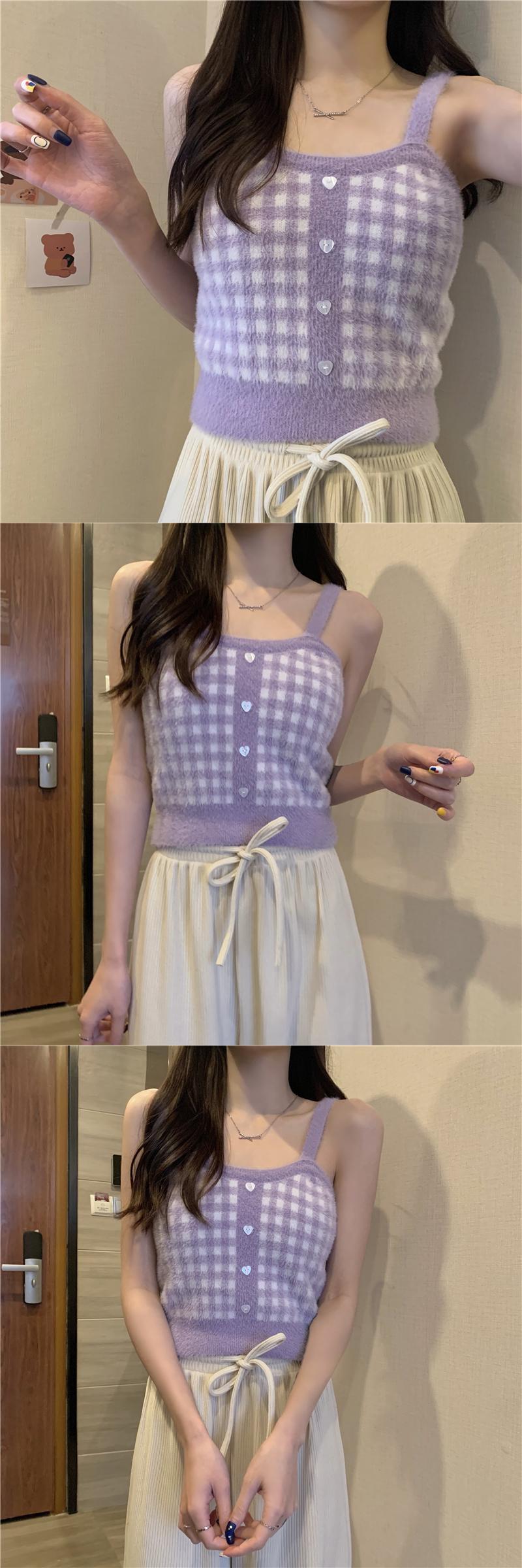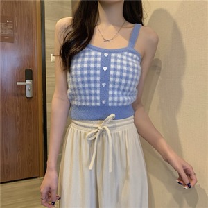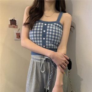 スタイルサマースリム薄手ショートニットシャツ 格子柄トップス 夏物 クレセントシティ1641725549