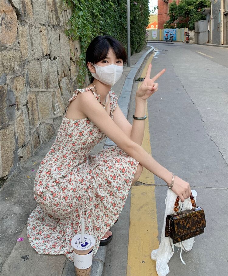 ドレス 薄手ウェストフローラルAラインスカート 花柄 クレセントシティ39584427840