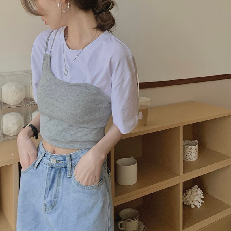 ショートTシャツ サマースタイルスリムクロップドトップス 夏物 ステッチ クレセントシティ28671032388