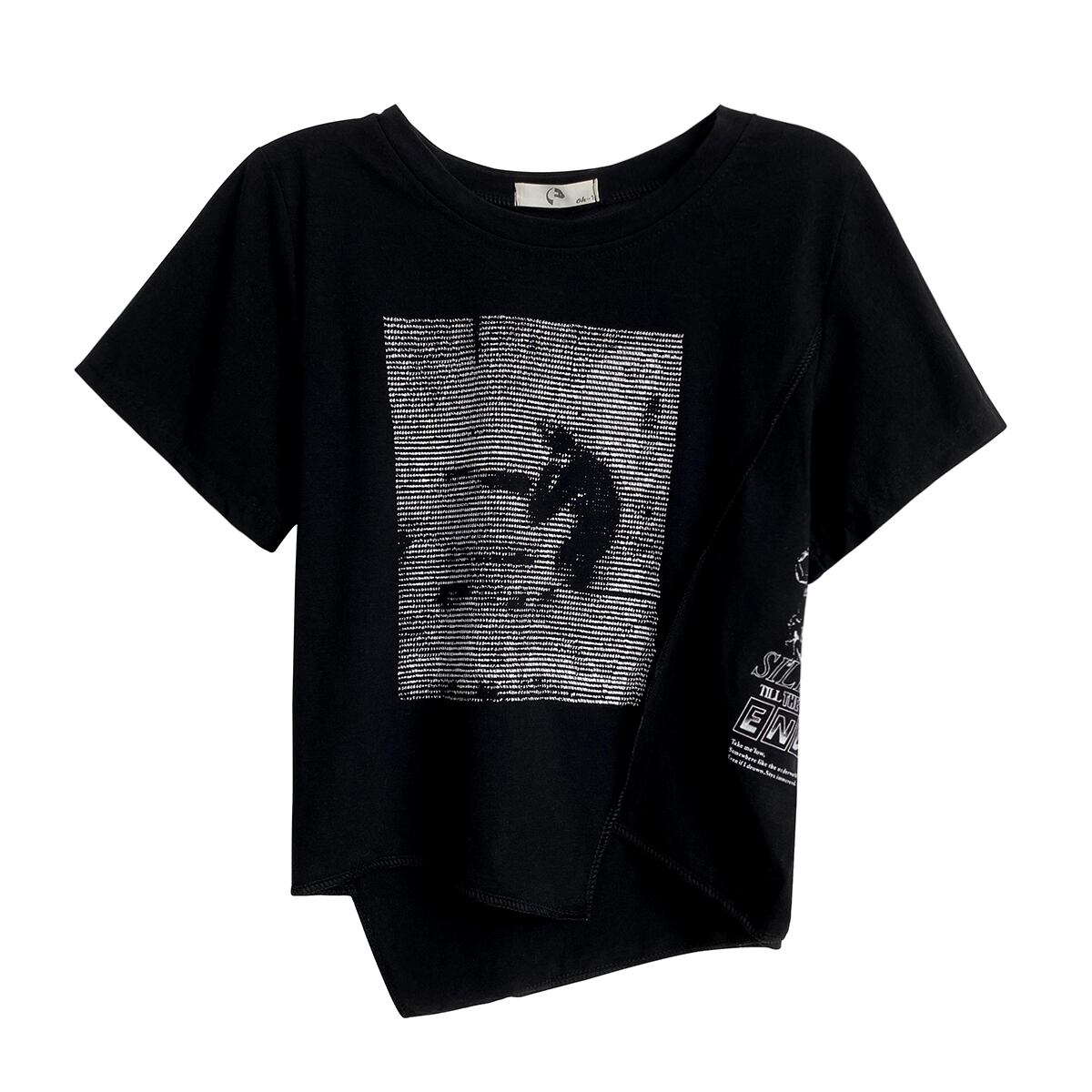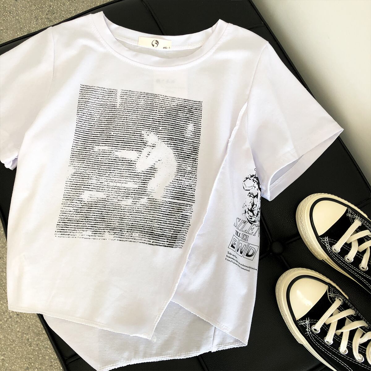 スタンダードプリントTシャツ サマースタイルルーズ薄手トップス レトロ 夏物 クレセントシティ92101493361