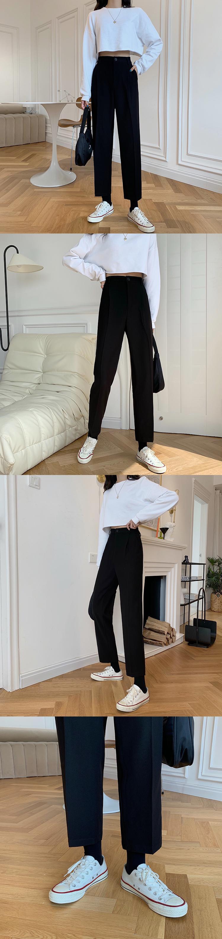 ブラックパンツ サマーハイウェスト薄手ルーズカジュアル 夏物 クレセントシティ69287740196