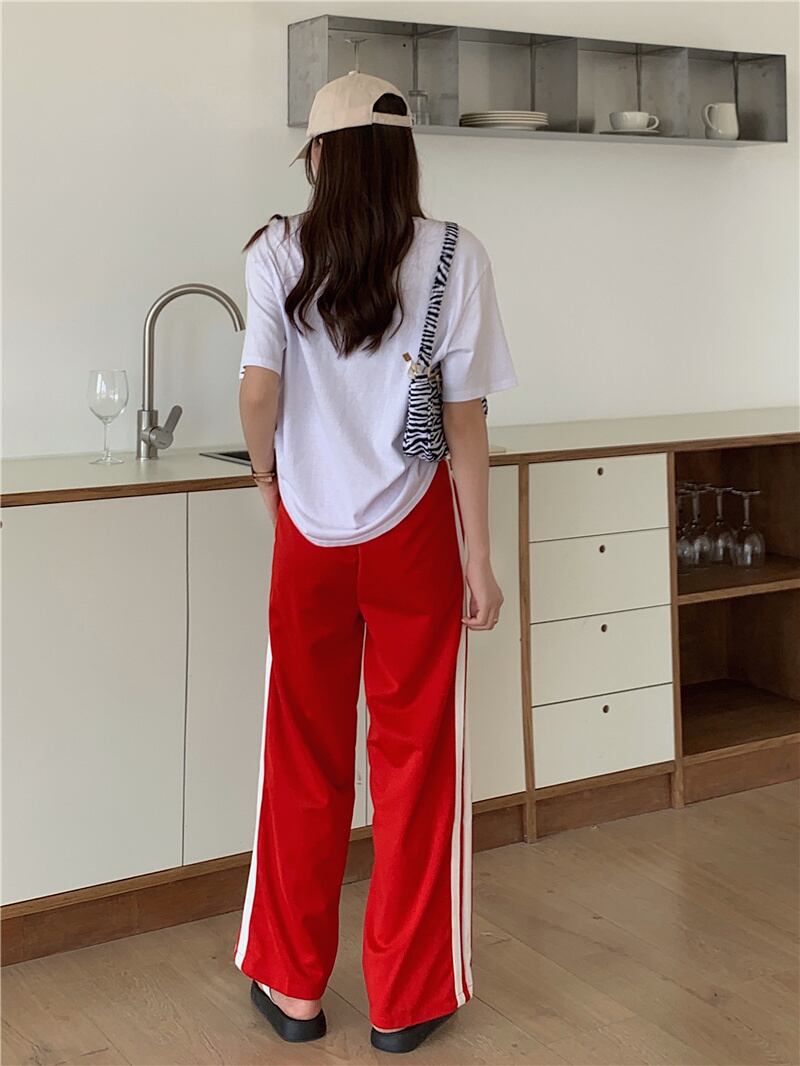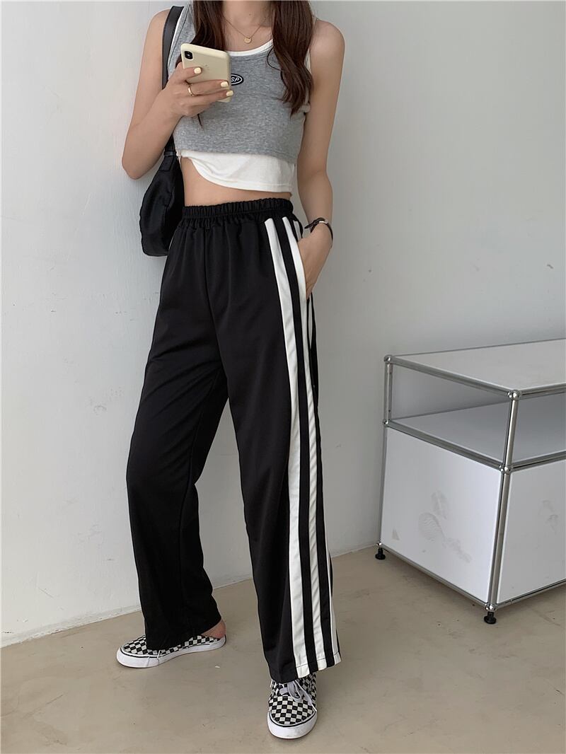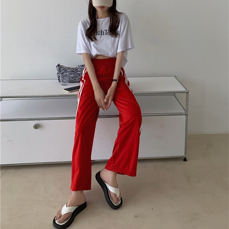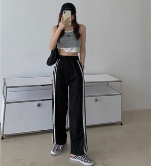 ストライプカジュアルパンツ サマーストレッチウェストルーズ薄手 エラスティック 伸縮 夏物 クレセントシティ27677199431