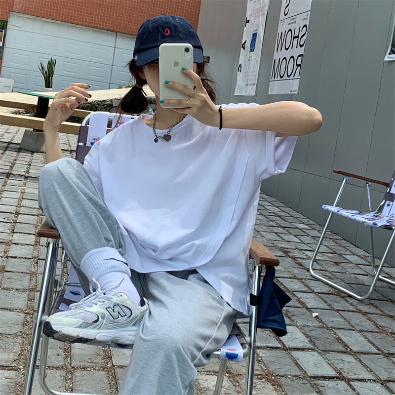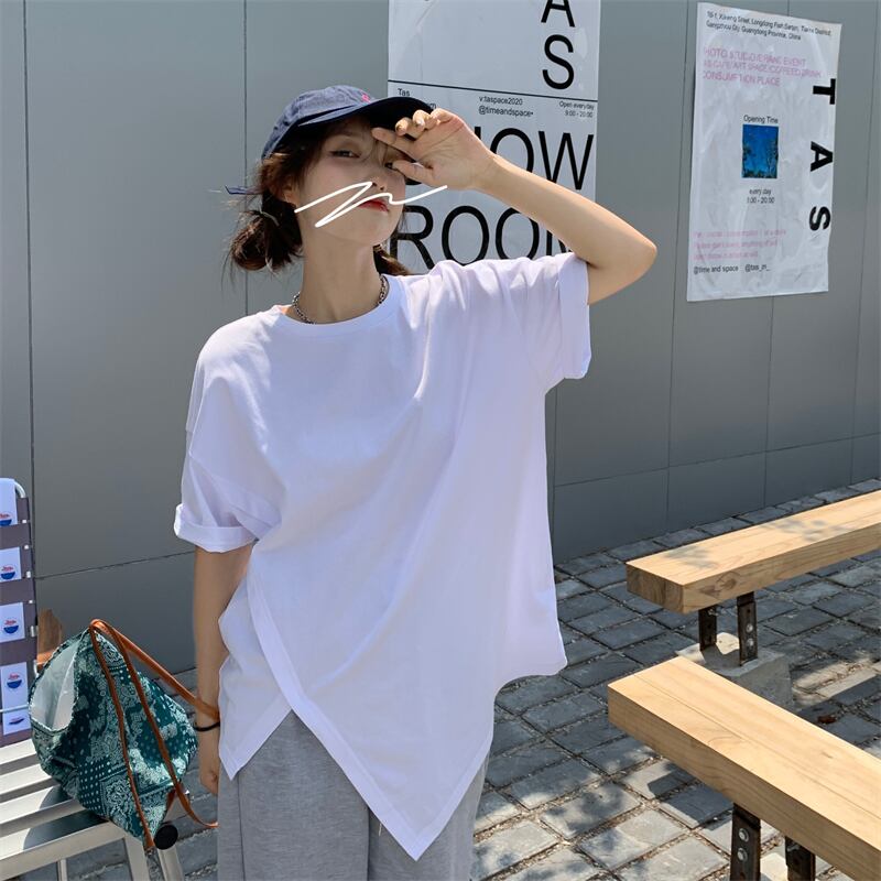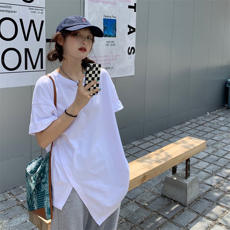 ホワイトTシャツ サマーカジュアルルーズトップス 夏物 クレセントシティ2593609221