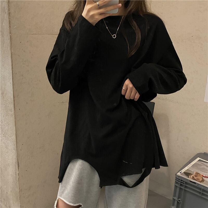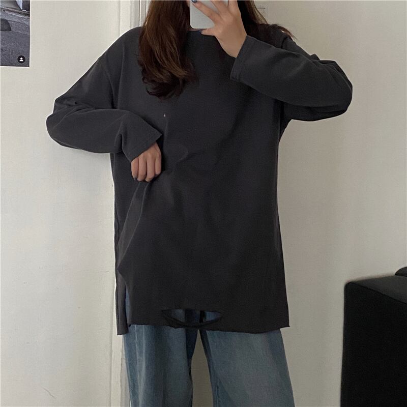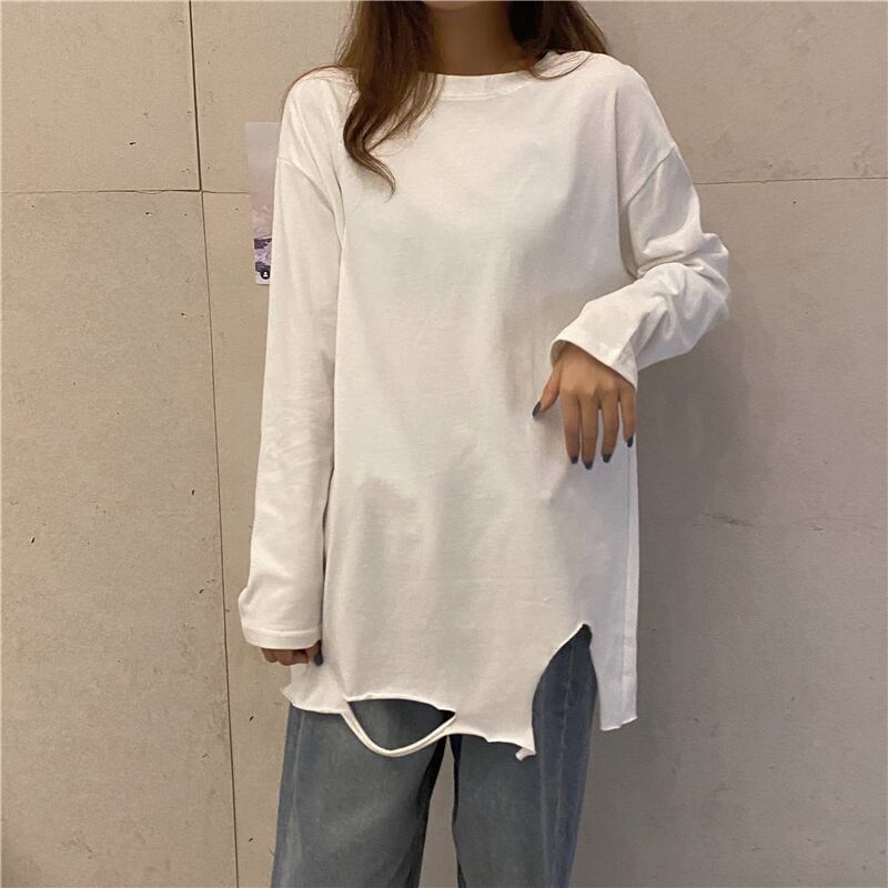 Tシャツ シャツ オータムカジュアルルーズホワイトトップス ロング 秋物 クレセントシティ16327150463