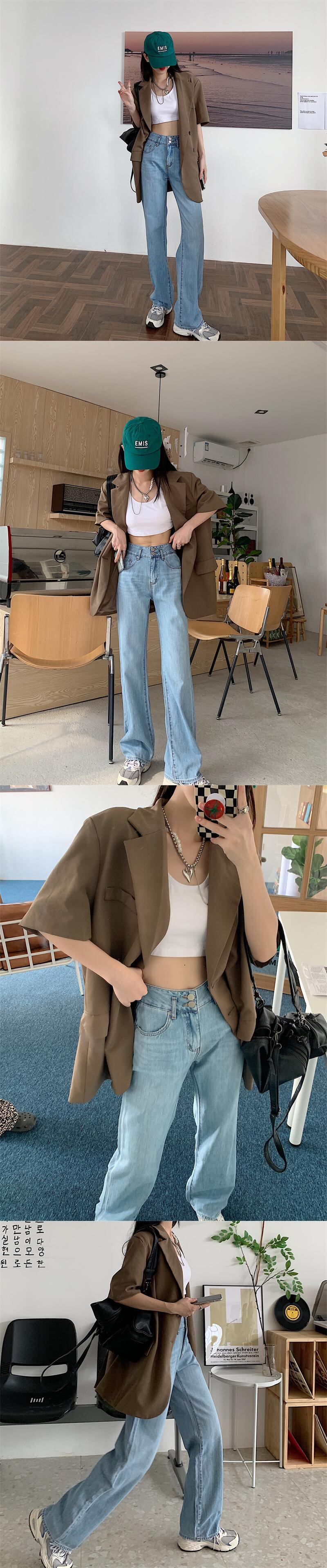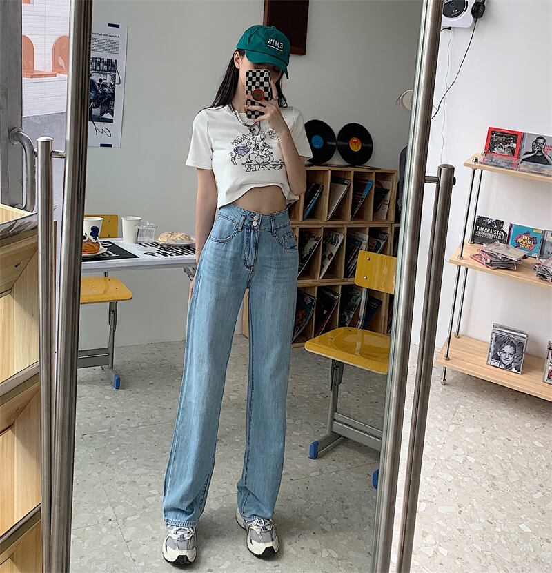 ジーンズ ルーズスタンダード薄手パンツ ハイウェスト レトロ クレセントシティ19213197154