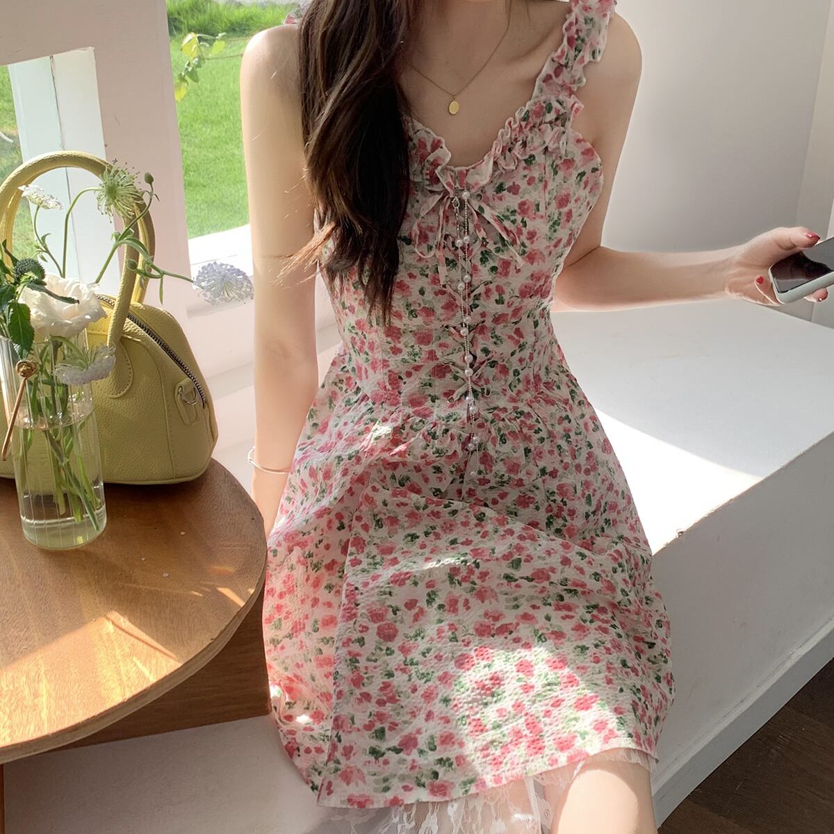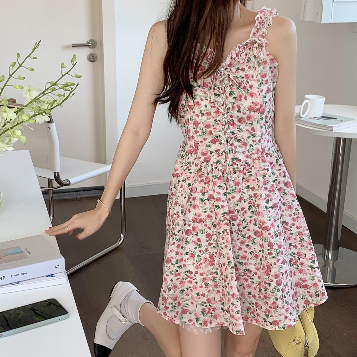 ドレス サマーウェスト薄手フローラルAラインスカート 大人ガーリー スウィート キュート カジュアル 夏物 花柄 クレセントシティ89099496338