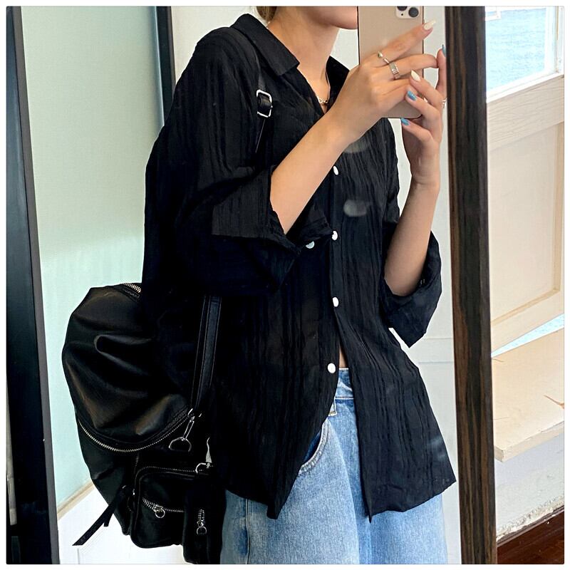 シャツ オータムルーズ薄手トップス ロング 秋物 クレセントシティ21914298421
