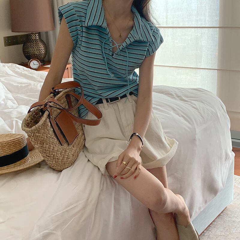 ストライプノースリーブTシャツ サマースタイルカラールーズ薄手カジュアルトップス 夏物 クレセントシティ50676829308