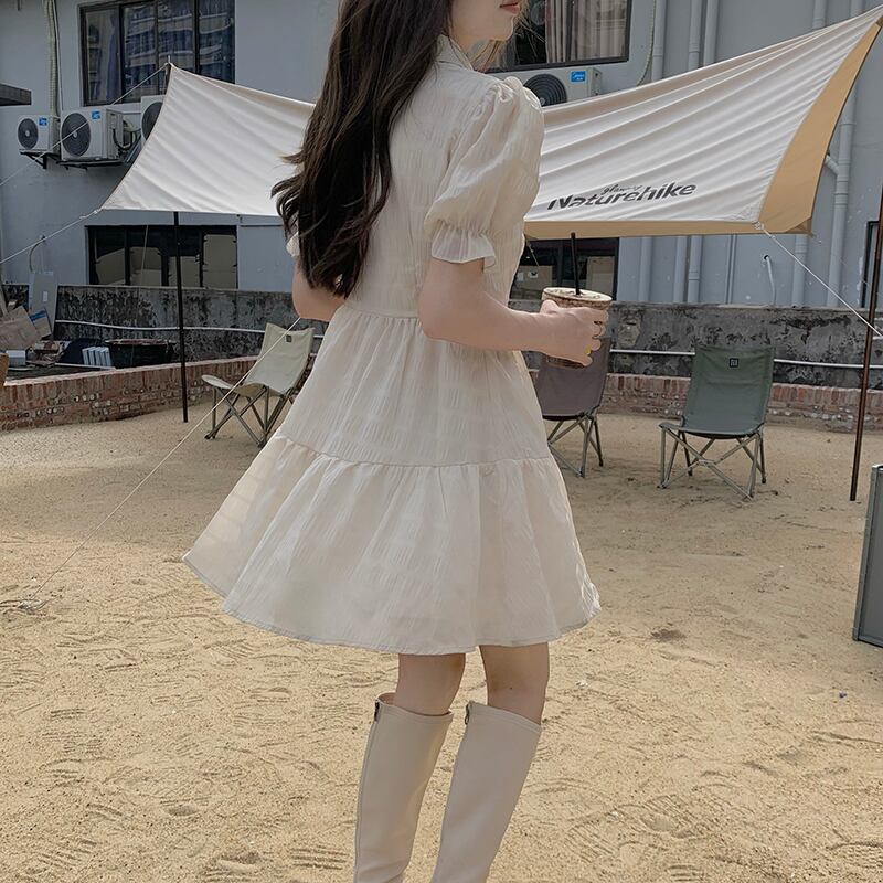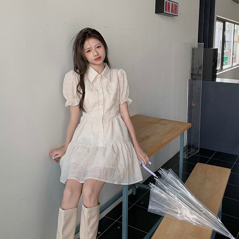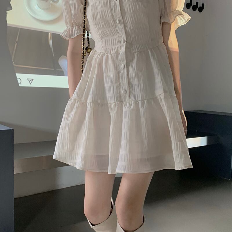 シフォンドレス サマーウェストスリーブホワイトAラインスカート 大人ガーリー スウィート キュート カジュアル 夏物 クレセントシティ17689062910