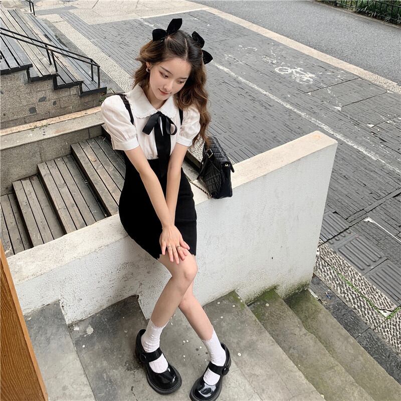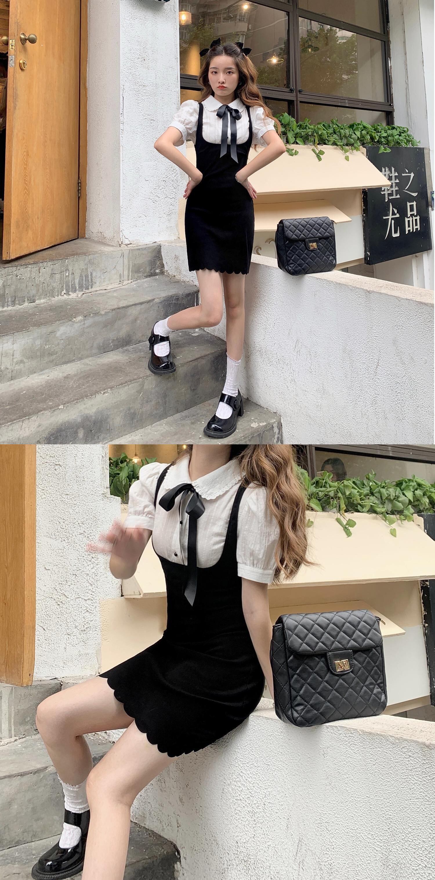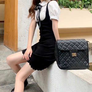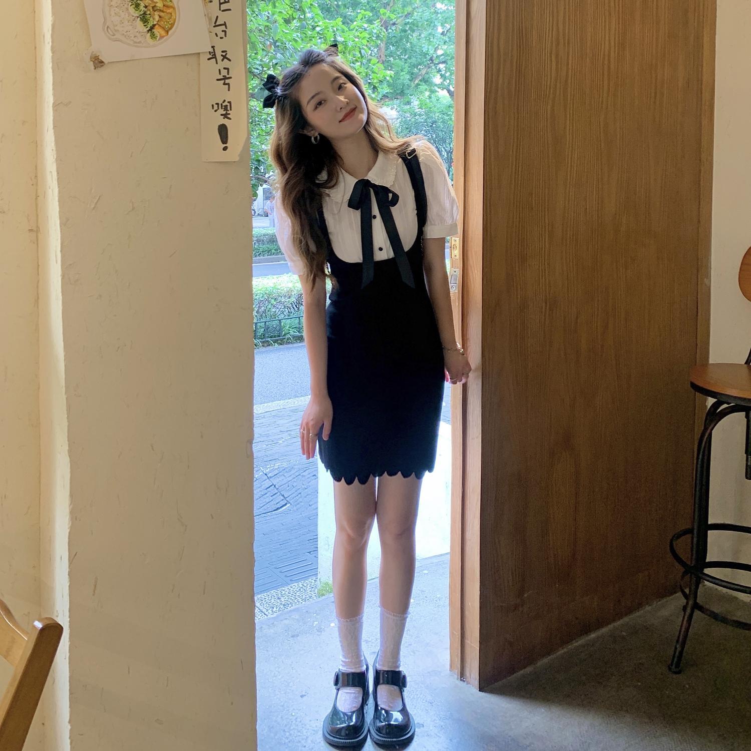 スリーブドレス サマーリボンウェスト薄手ブラックAラインスカート 大人ガーリー スウィート キュート カジュアル 夏物 クレセントシティ48070310159