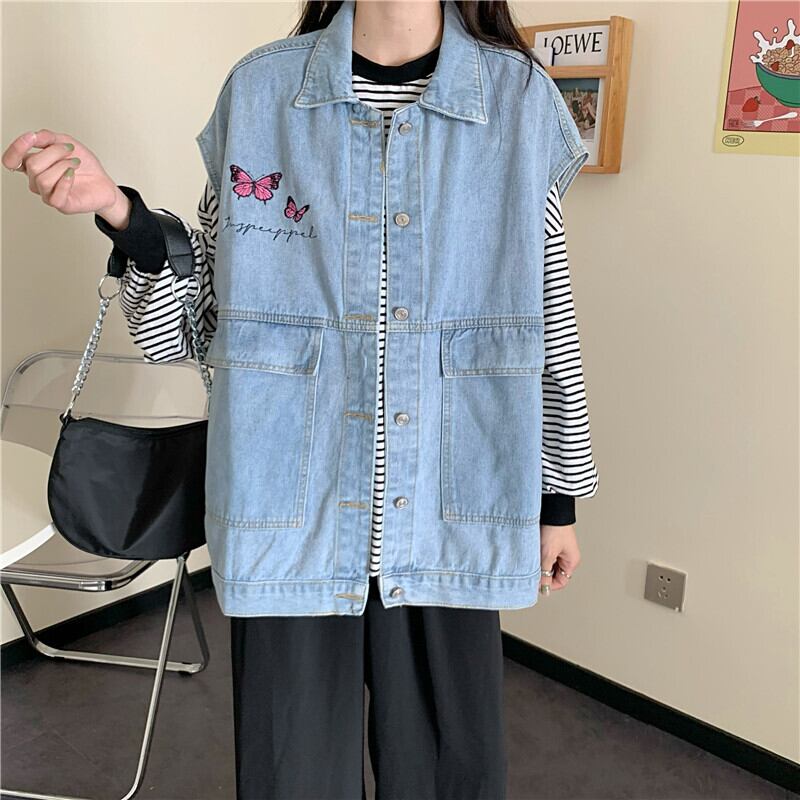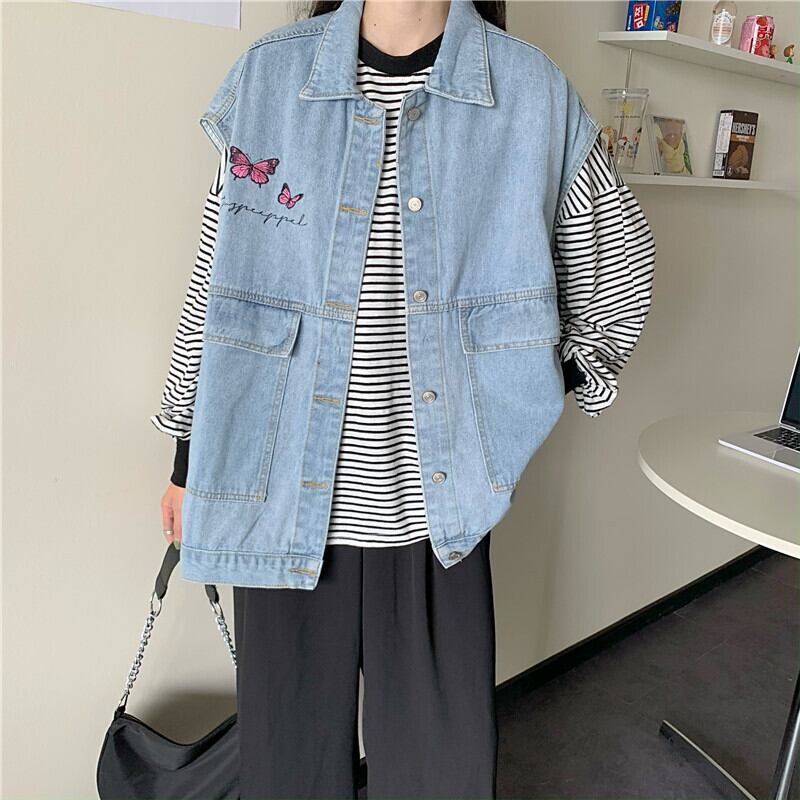 オータムジャケット スタンダードルーズ刺繍ノースリーブトップス レトロ 秋物 クレセントシティ47360763941