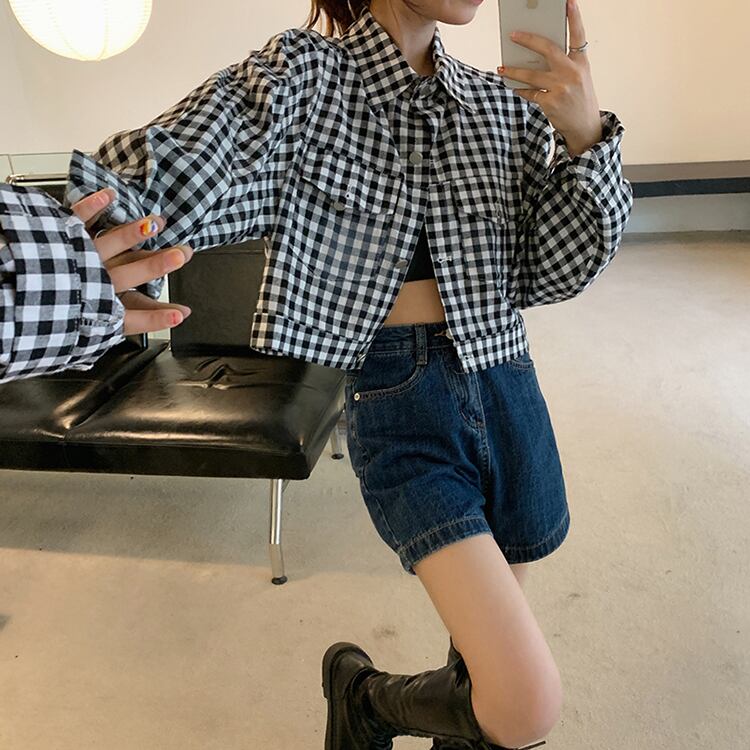 格子柄ショートコート オータムルーズカジュアル薄手カーディガントップス 大人ガーリー スウィート キュート 秋物 クレセントシティ99743285678