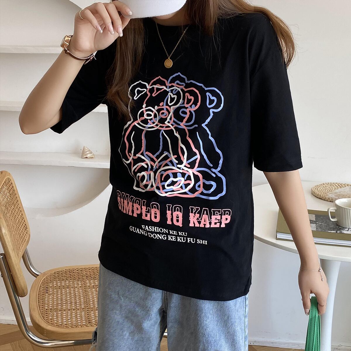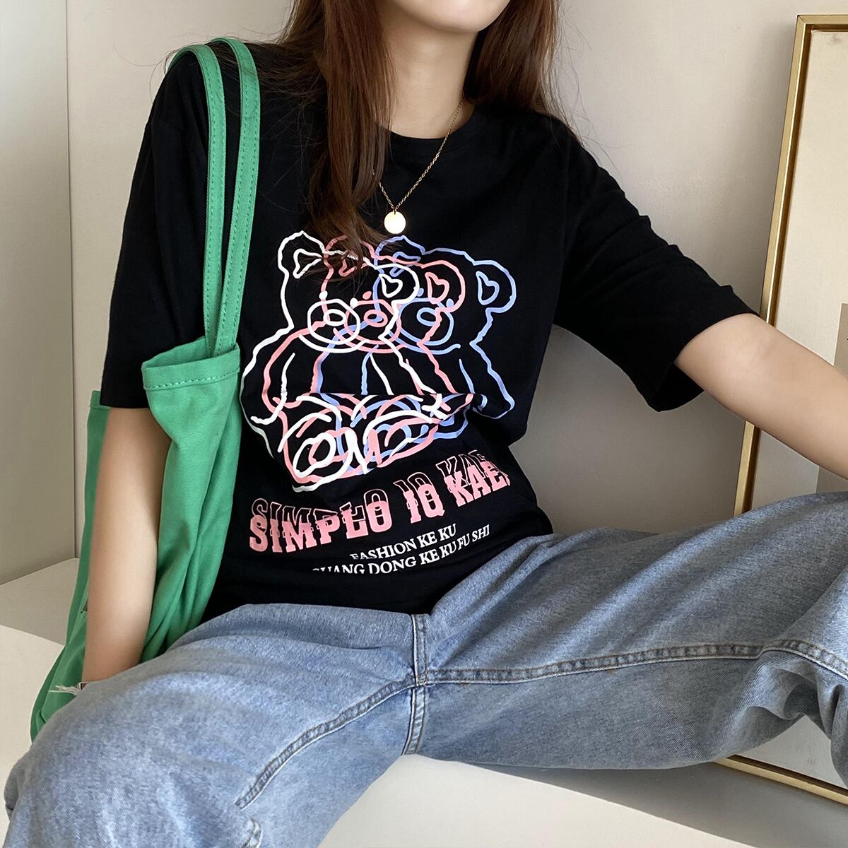 スリーブTシャツ サマー薄手ルーズプリント半袖トップス ハーフスリーブ 夏物 クレセントシティ42637135671