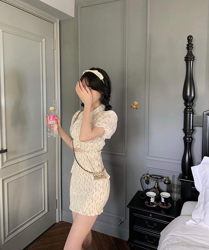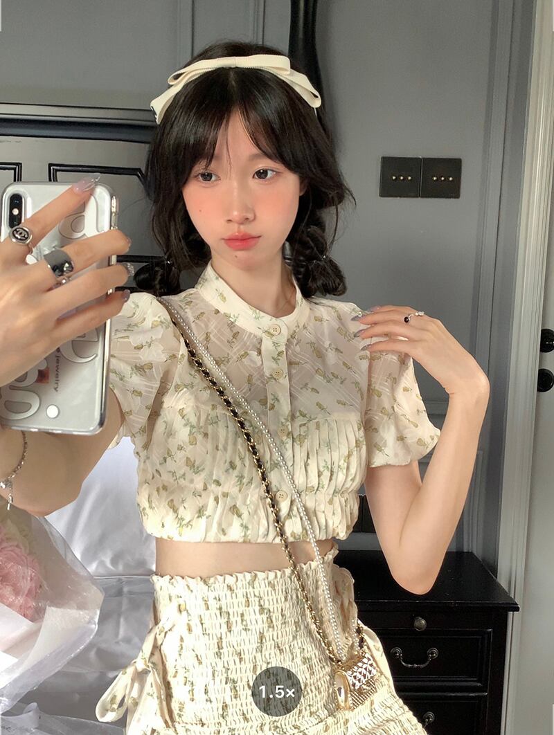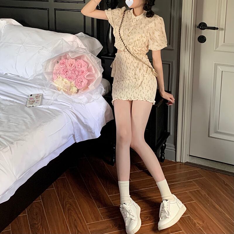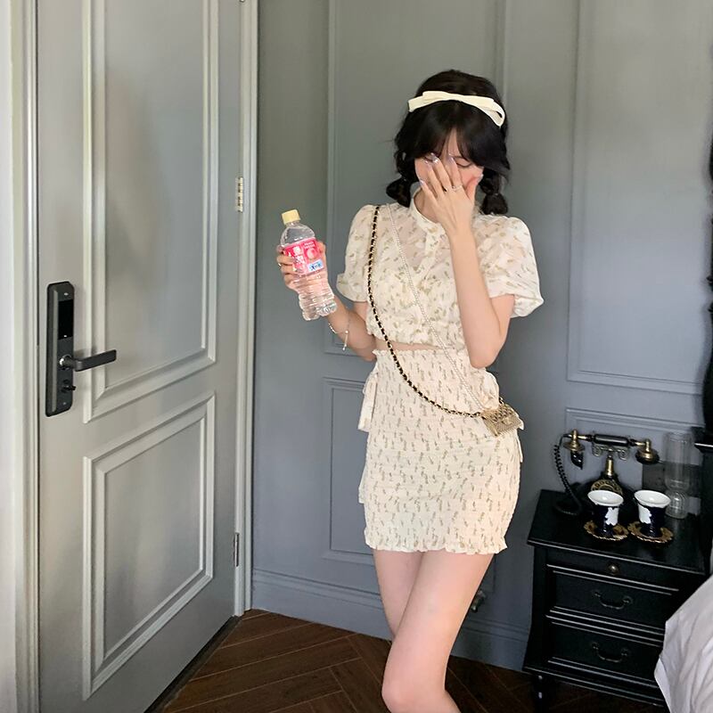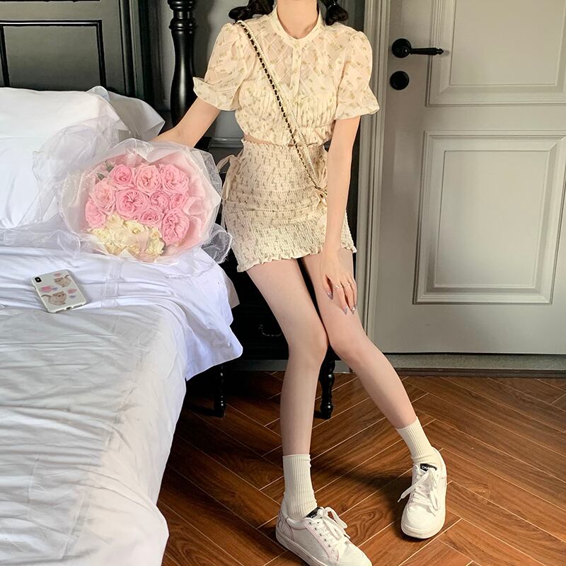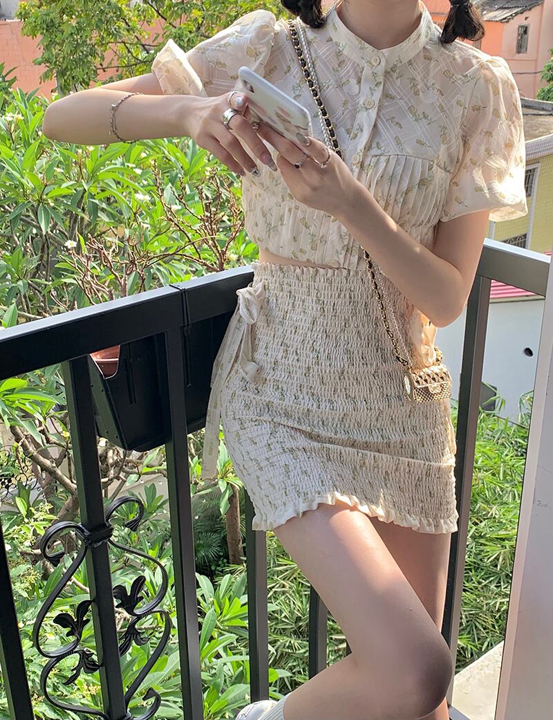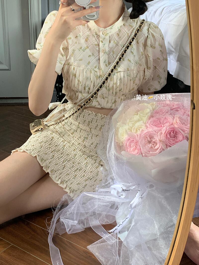 サマースリーブフローラルブラウス ハイウェストウェストスカート ストリート 大人ガーリー スウィート キュート カジュアル 夏物 花柄 クレセントシティ58327067073