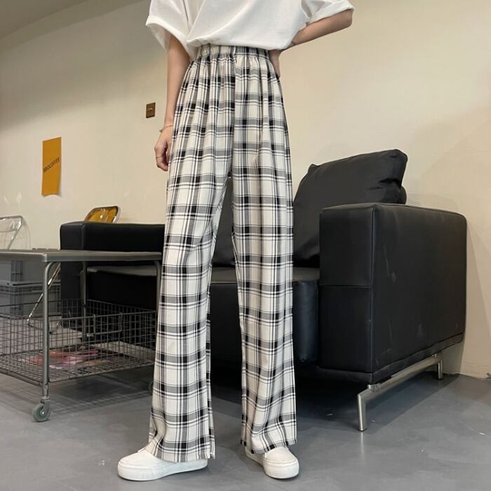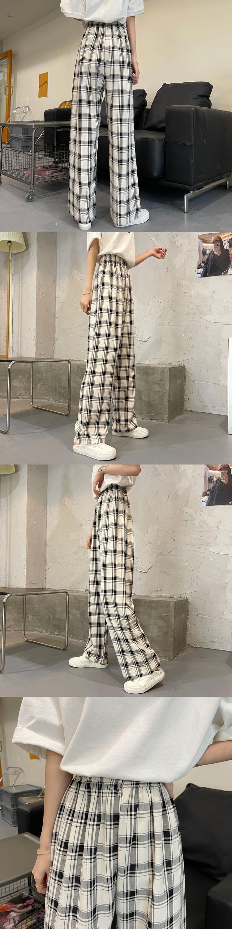 レッド格子柄パンツ サマー薄手ハイウェストウェストルーズカジュアル 夏物 クレセントシティ65017868871