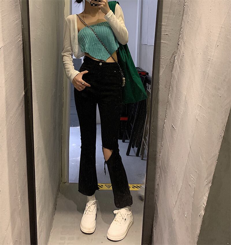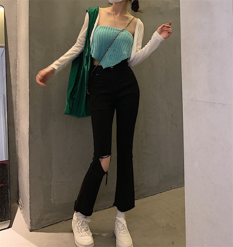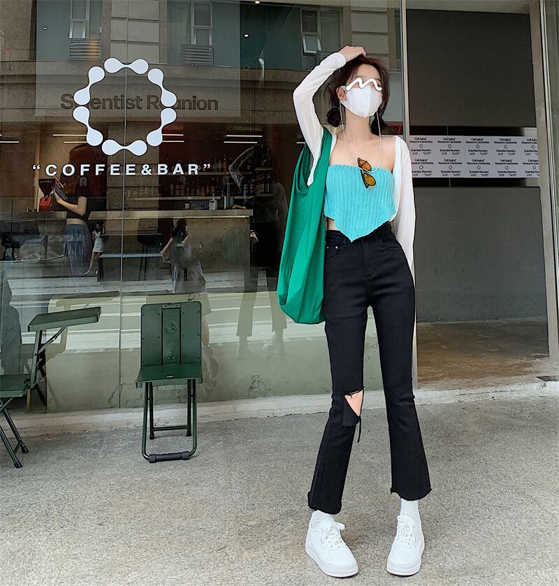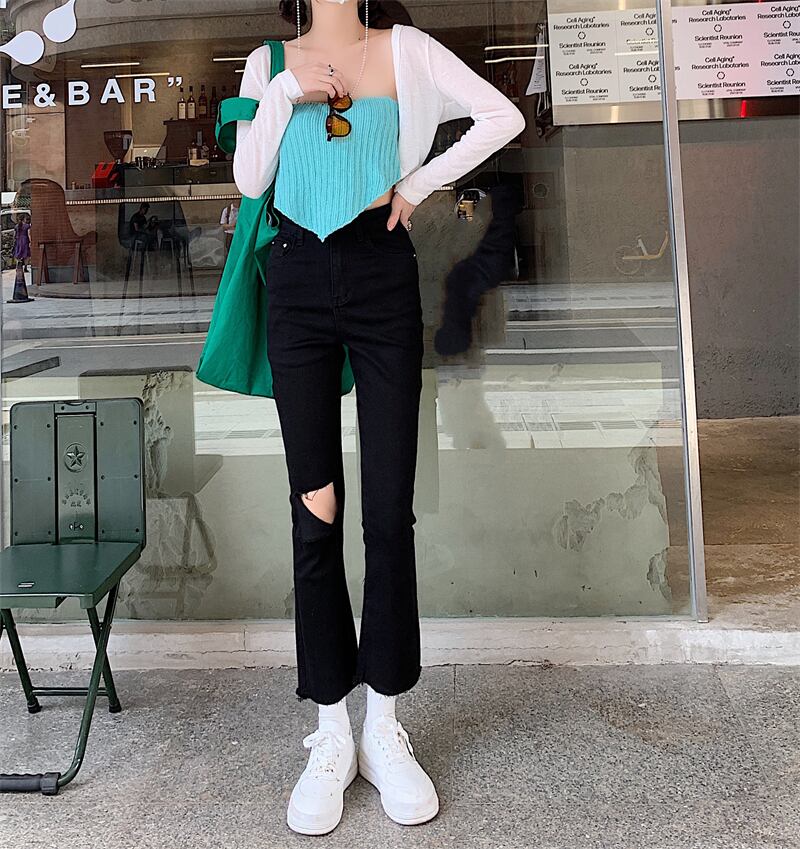ブラックジーンズ サマースリムハイウェストパンツ 夏物 クレセントシティ30297433700