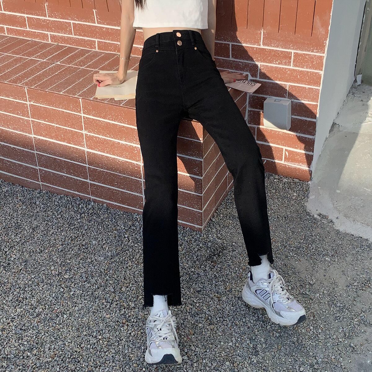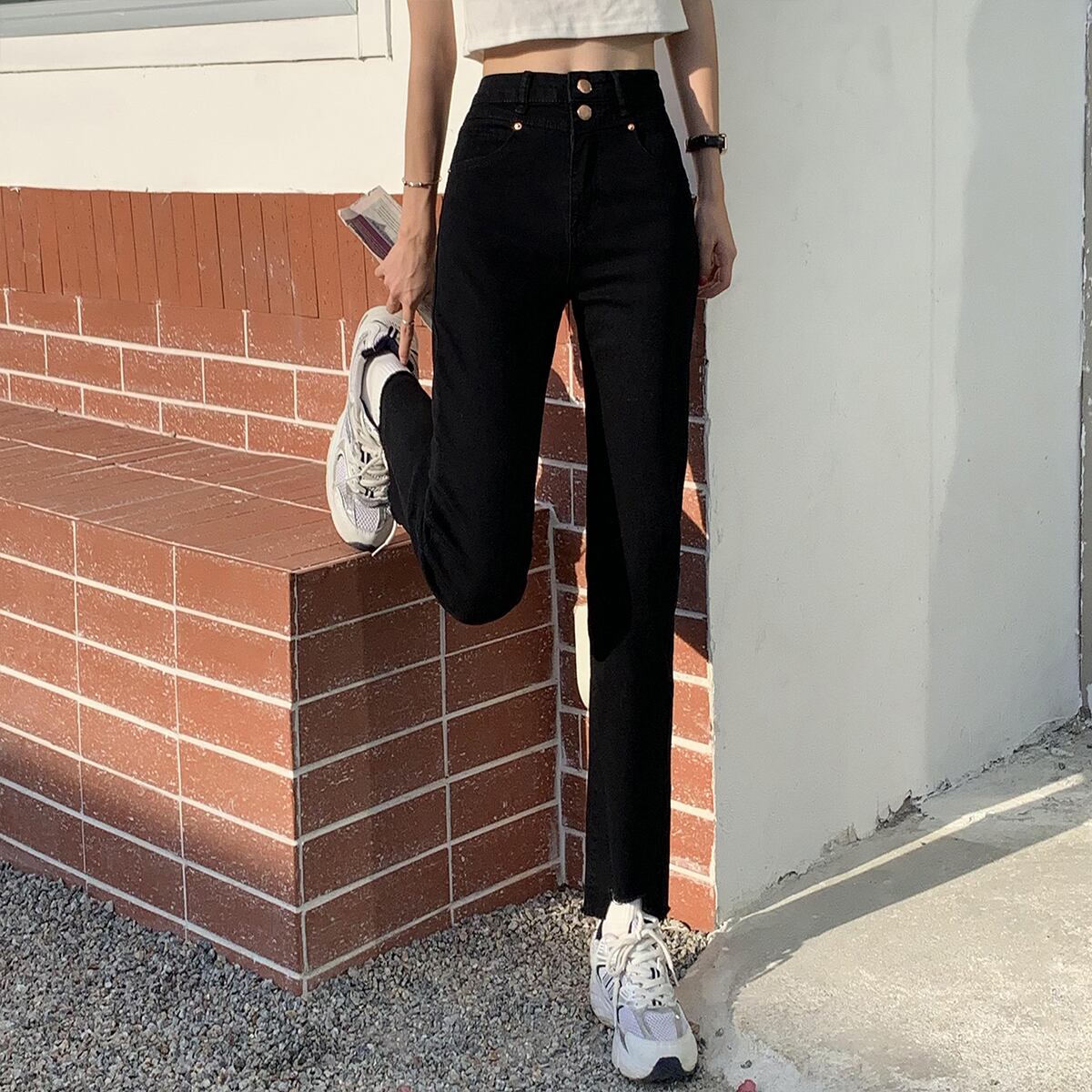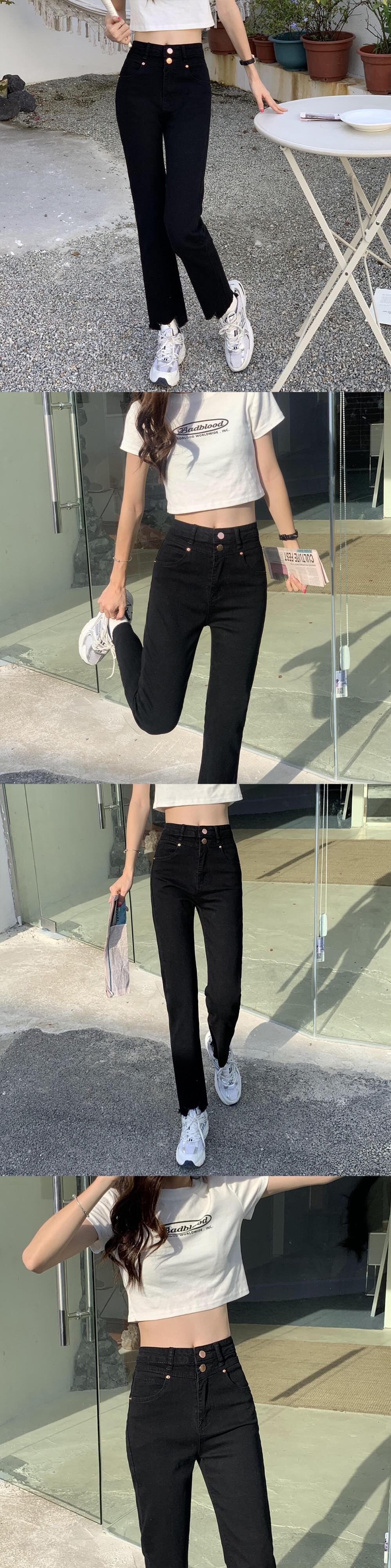 ブラックジーンズ 薄手ハイウェストパンツ クレセントシティ35691382361