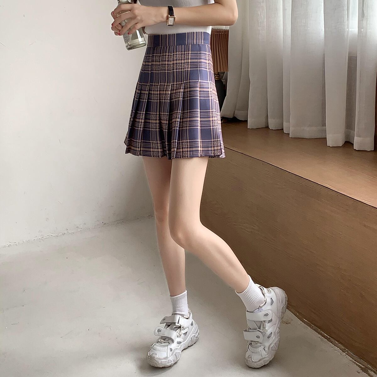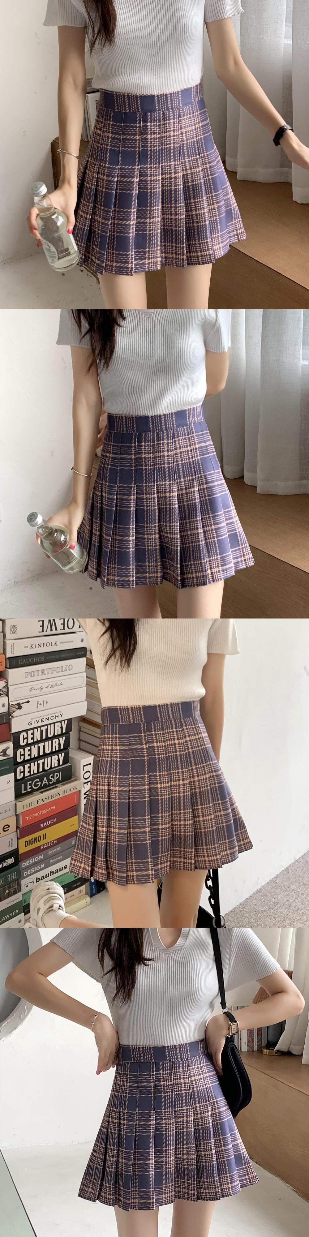 プリーツショートスカート サマー格子柄ウェストホワイトAライン 夏物 クレセントシティ90617998042