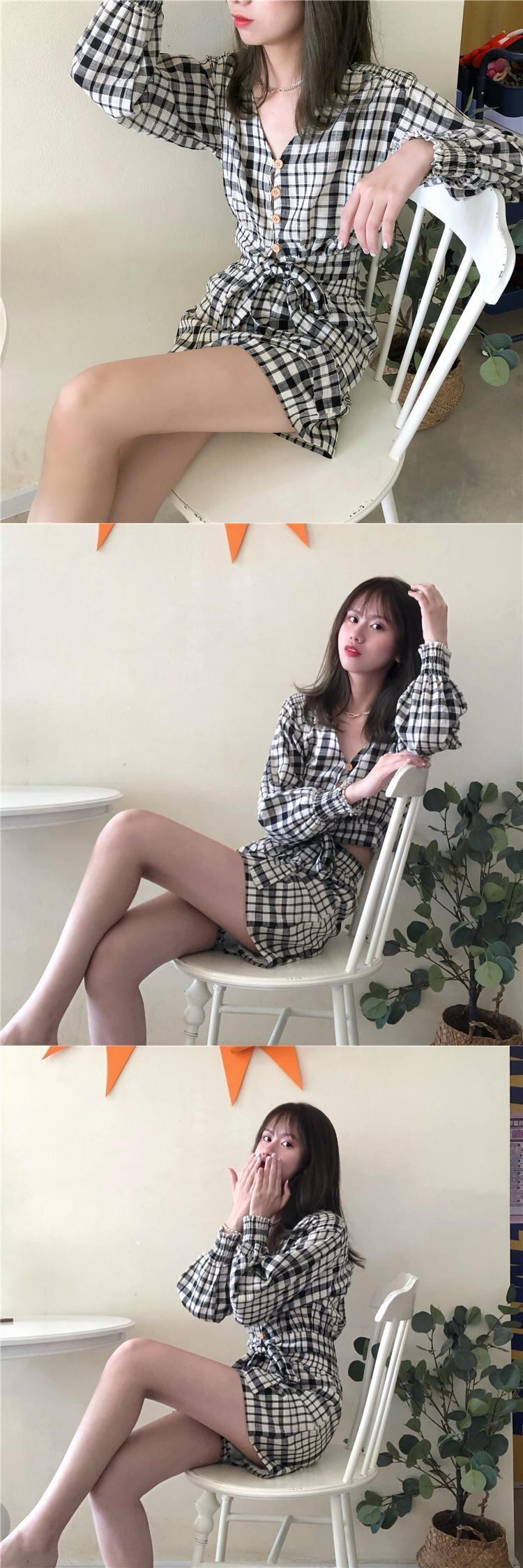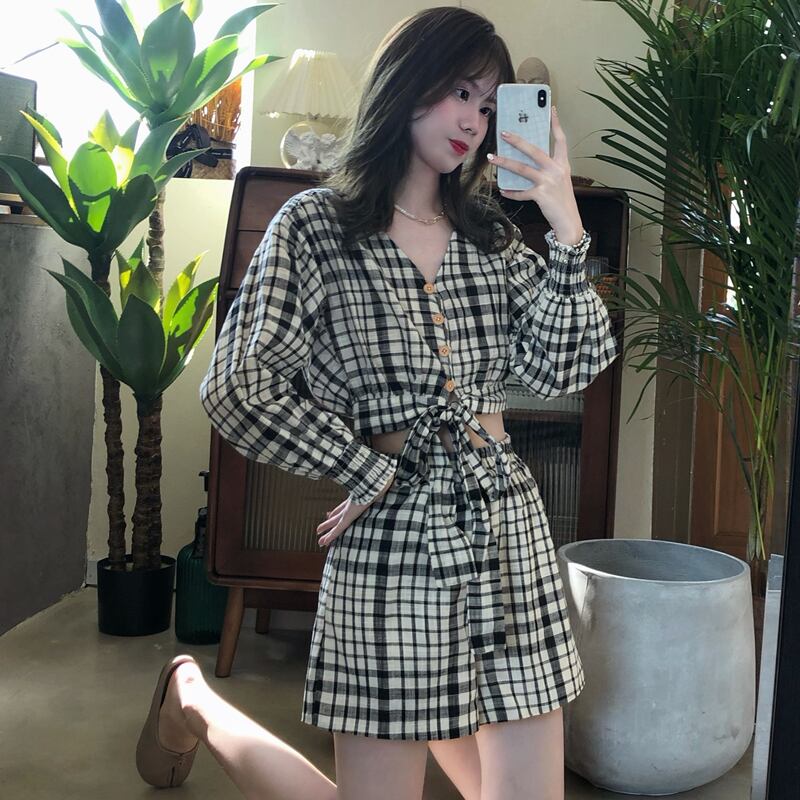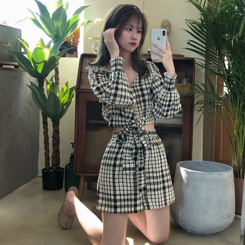 オータム格子柄ショートトップス ハイウェストショーツ ロング 秋物 ブルマー クレセントシティ86983393693