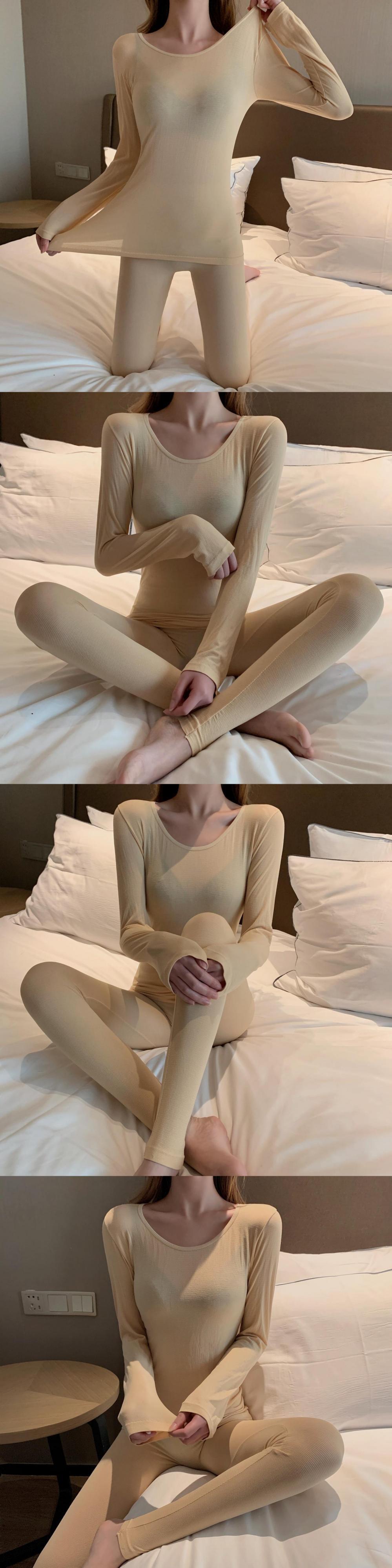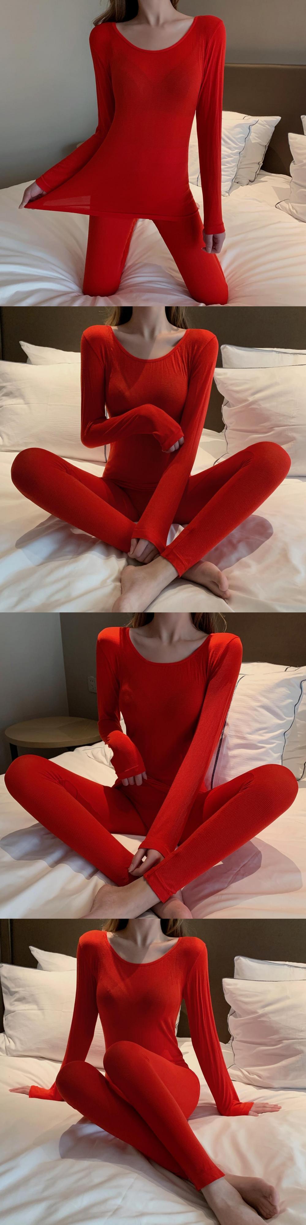 オータムサーマルレディース薄手スリムソリッド カラーセット ロング 秋物 ソリッドカラー クレセントシティ33050947487
