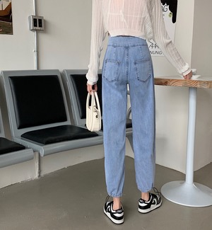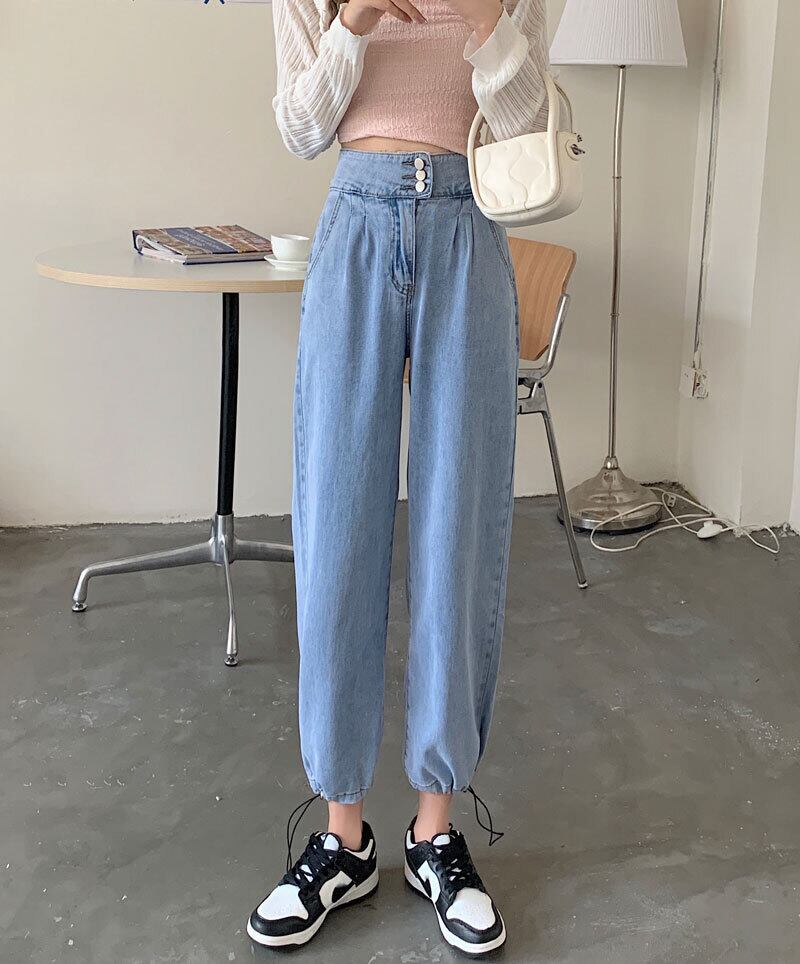 ジーンズ サマー薄手ハイウェストウェストルーズパンツ レッド 夏物 クレセントシティ69584066642