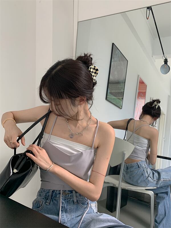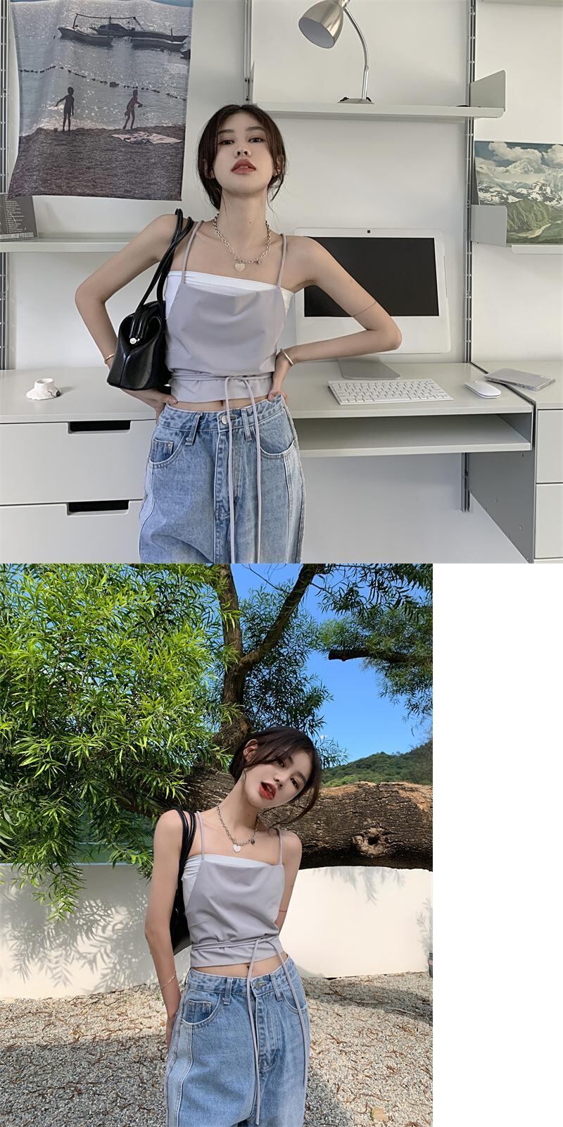 トップス バックショートストラップ レース 大人ガーリー スウィート キュート カジュアル レースアップ クレセントシティ48321628247