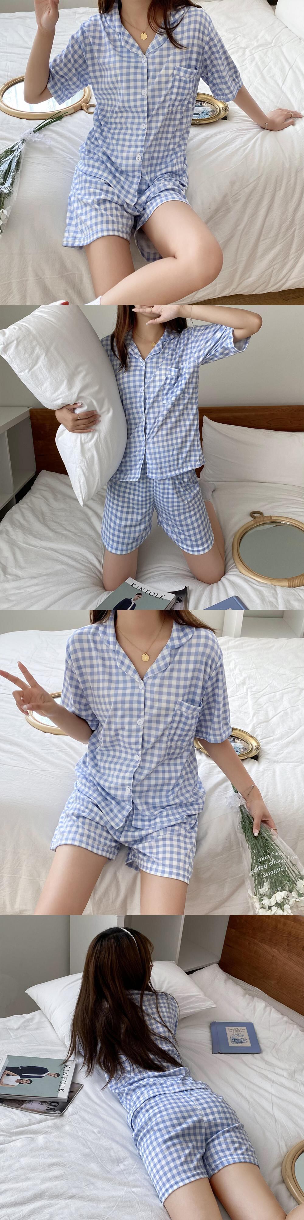 格子柄サマー薄手スタイルルーズトップス ショーツ セット レッド 夏物 ブルマー クレセントシティ4211100829