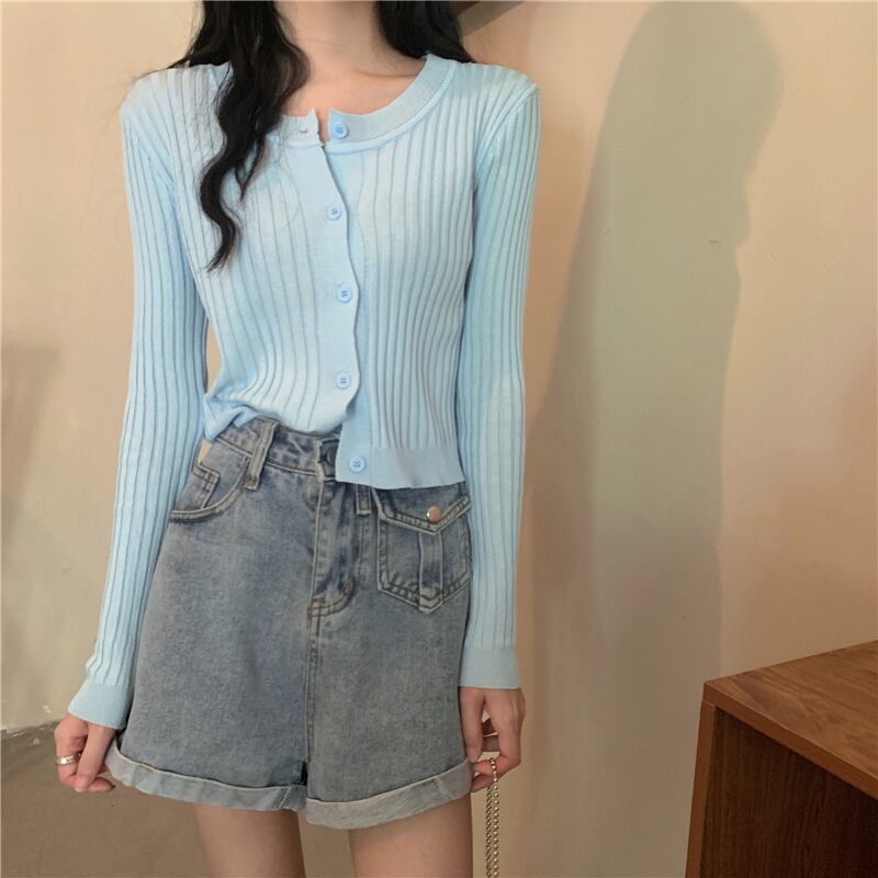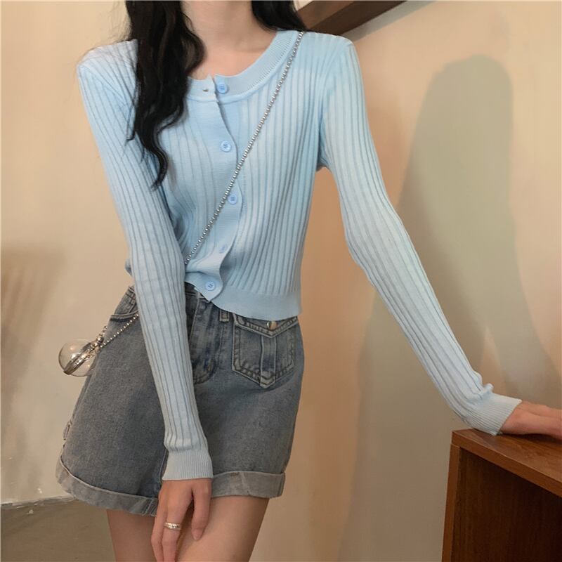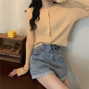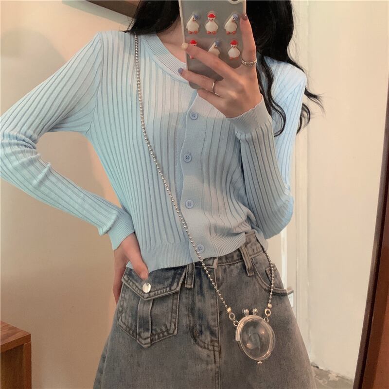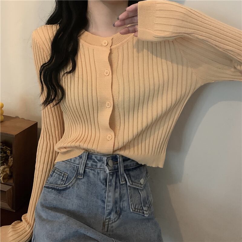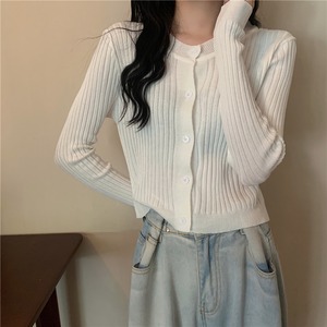 薄手ニットカーディガンオータムスタイルスリムソリッド カラーショートトップス ロング 秋物 ソリッドカラー クレセントシティ20757642339