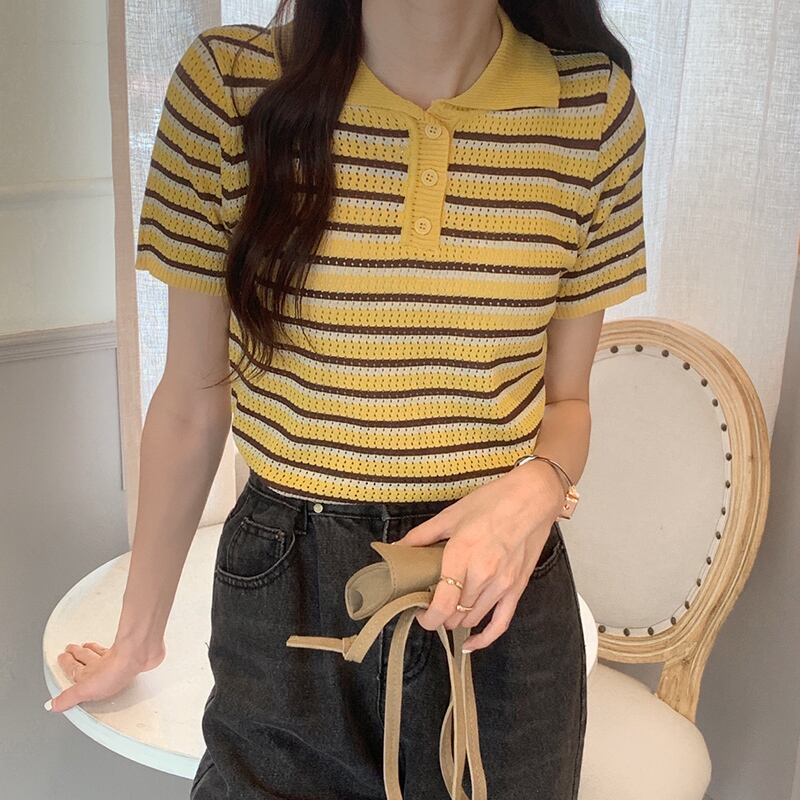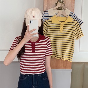 カラーストライプTシャツ レディースサマーニットトップス 夏物 クレセントシティ48370771269