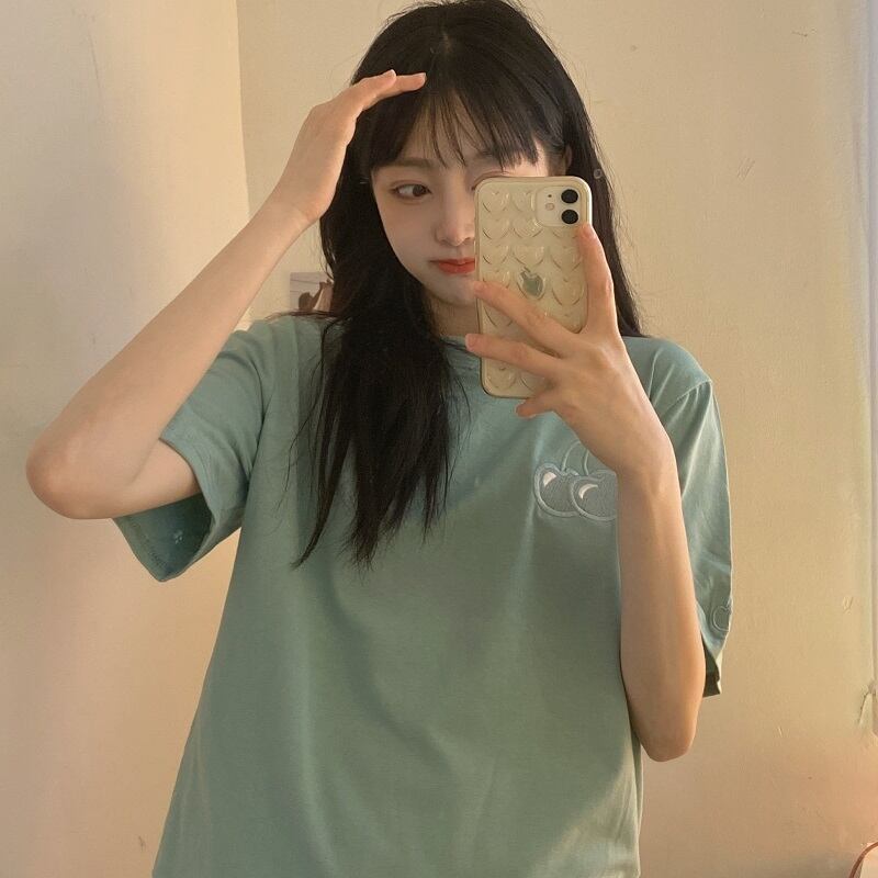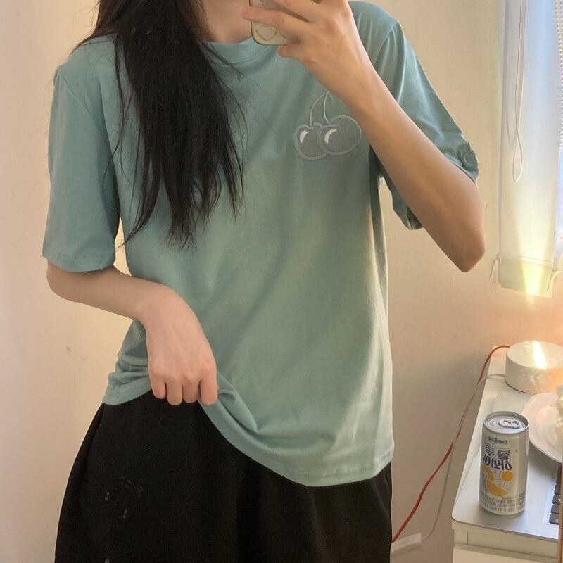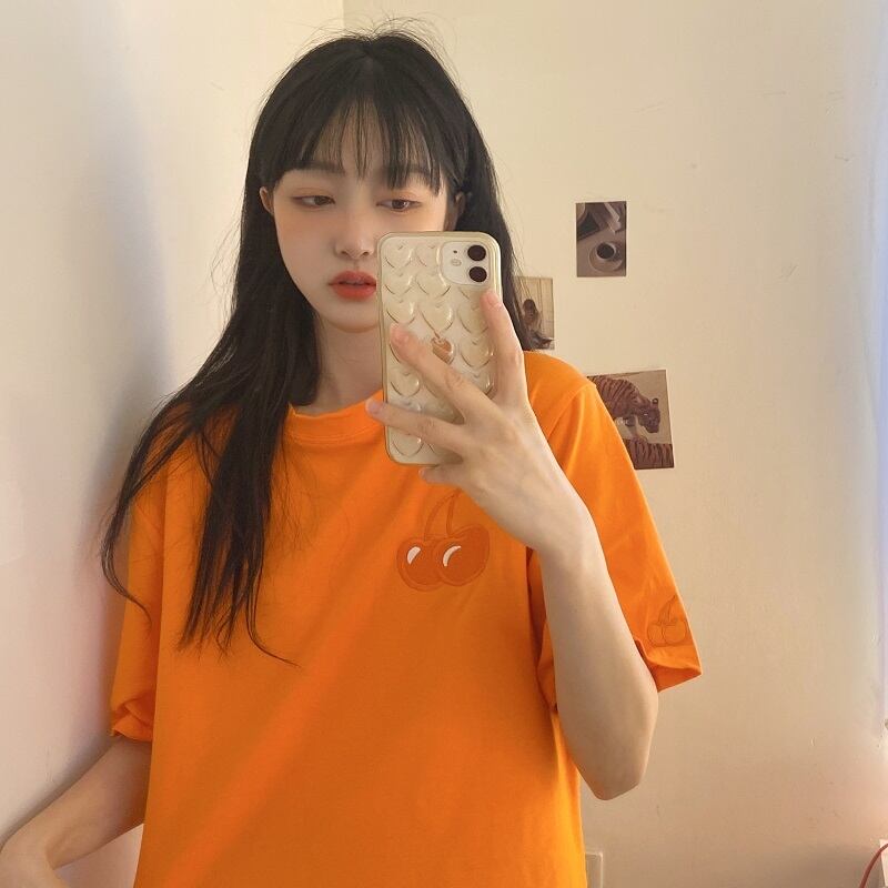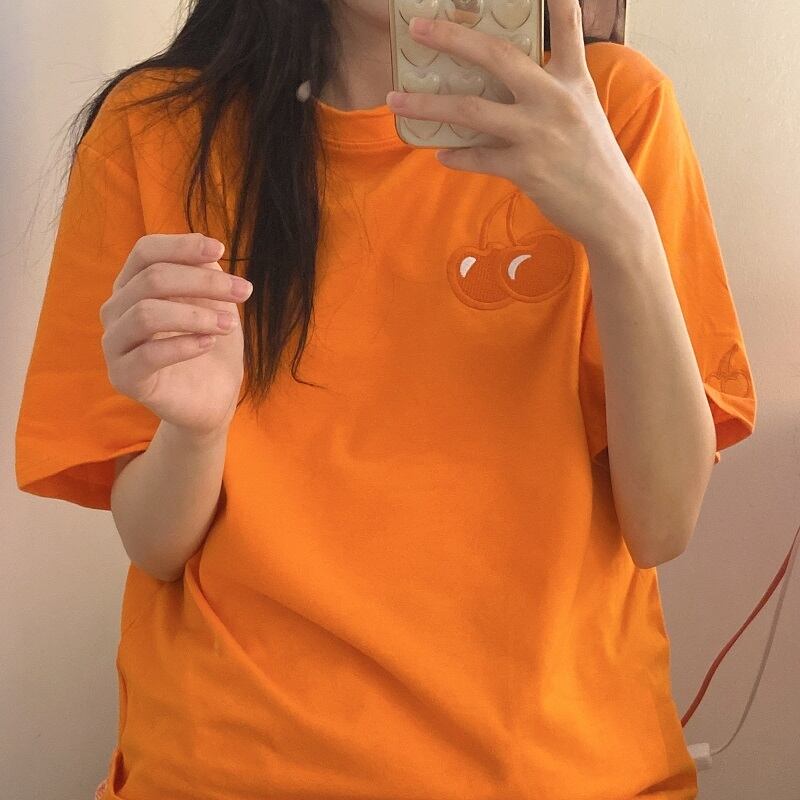 刺繍Tシャツ サマーオレンジルーズカジュアル薄手トップス 夏物 クレセントシティ3858108738