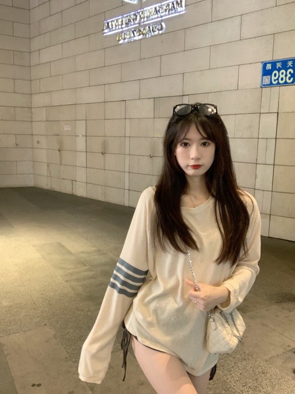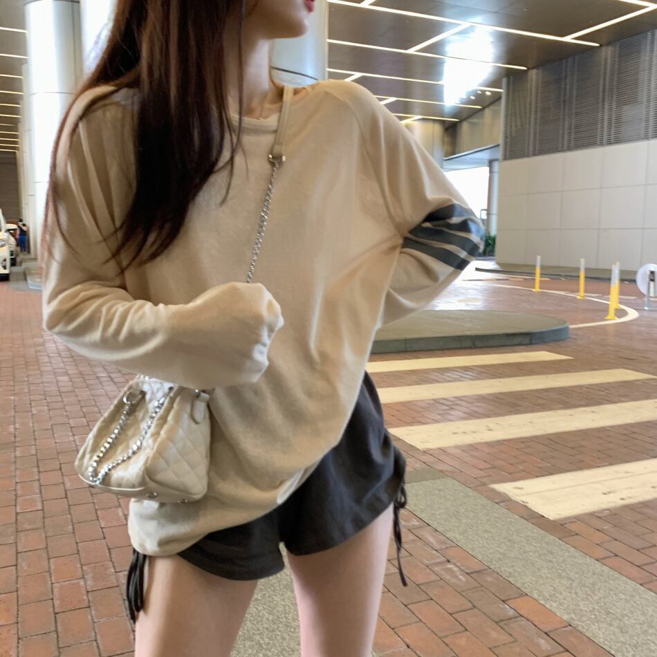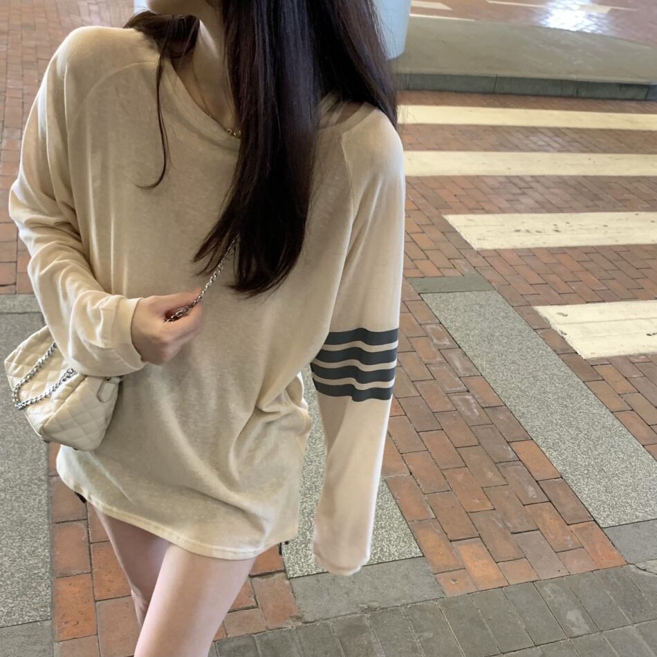 Tシャツ オータム薄手ルーズストライプトップス ロング 秋物 クレセントシティ94867954175