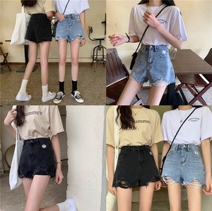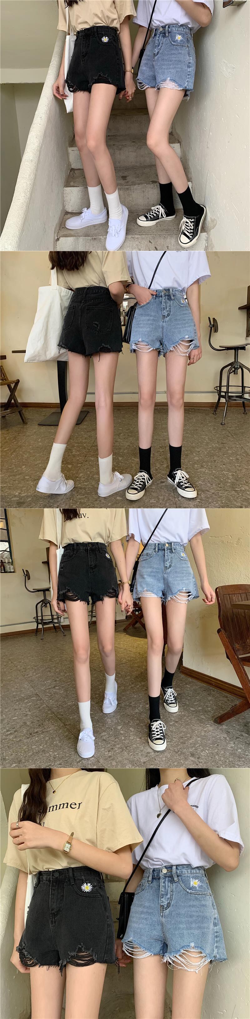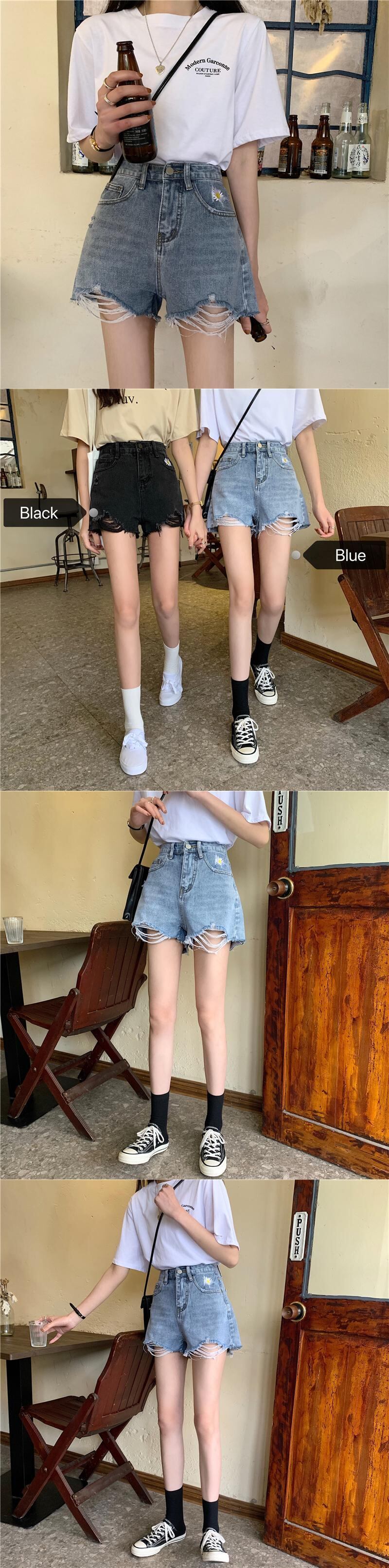 ショーツ サマー薄手ルーズウェストワイドレッグパンツ ブラックAライン レッド 刺繍 夏物 ブルマー ワイドパンツ クレセントシティ12428129915