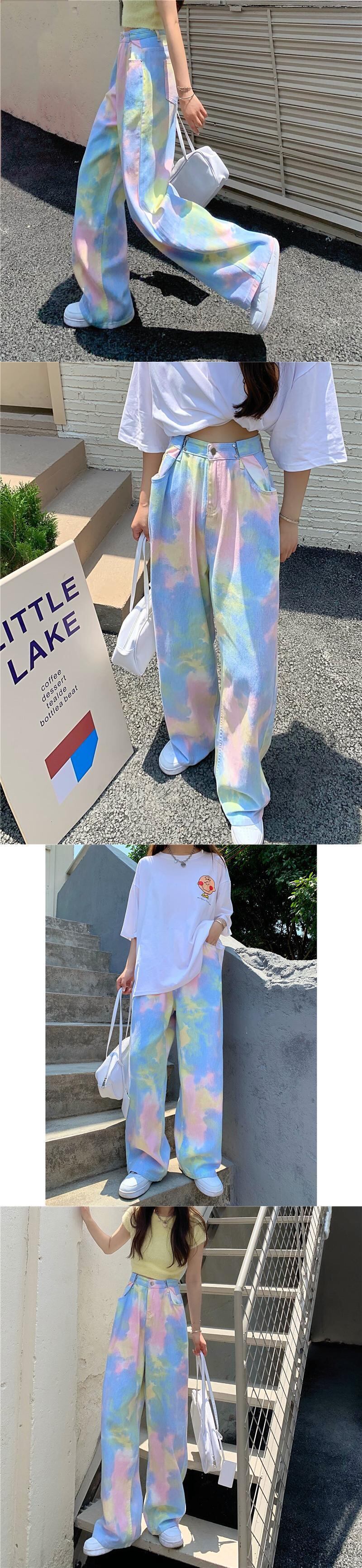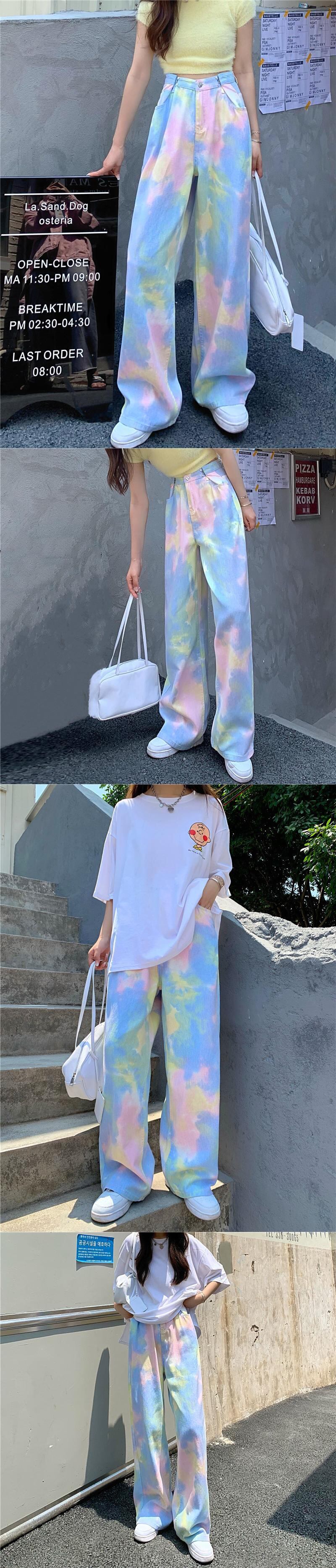 ジーンズ サマーワイドレッグパンツ 薄手ルーズウェスト 夏物 ワイドパンツ クレセントシティ10164639334