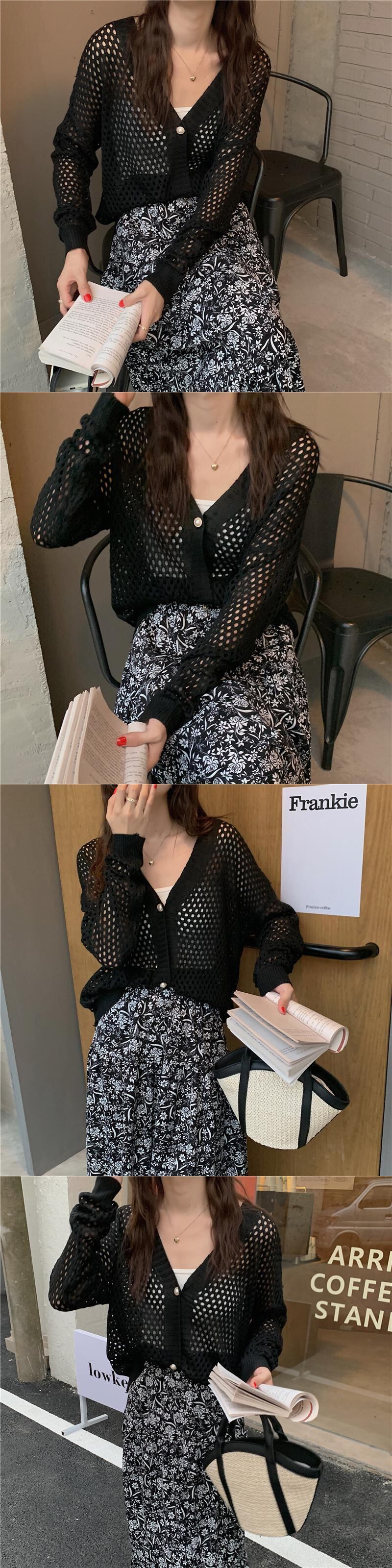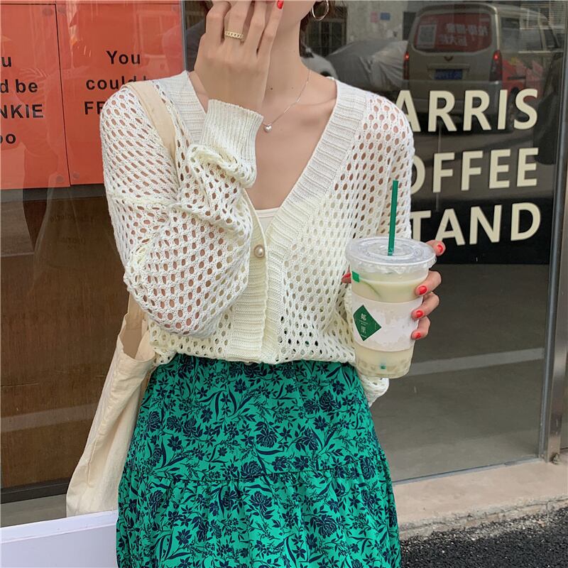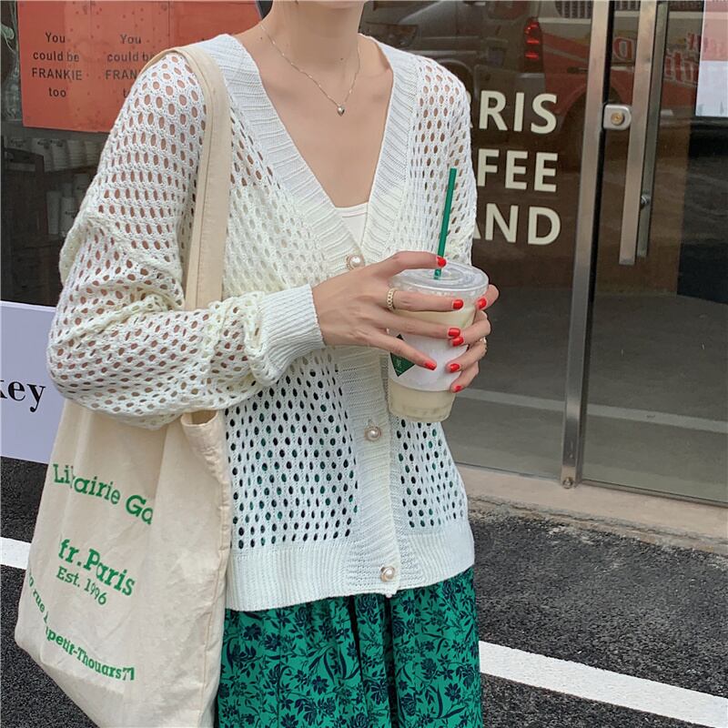 ニットシャツ サマーVネックルーズ薄手カーディガントップス ロング 夏物 クレセントシティ69900291834