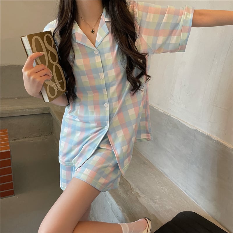 カラー格子柄サマーカジュアルルーズ 大人ガーリー スウィート キュート 夏物 クレセントシティ21225035372