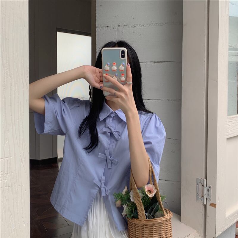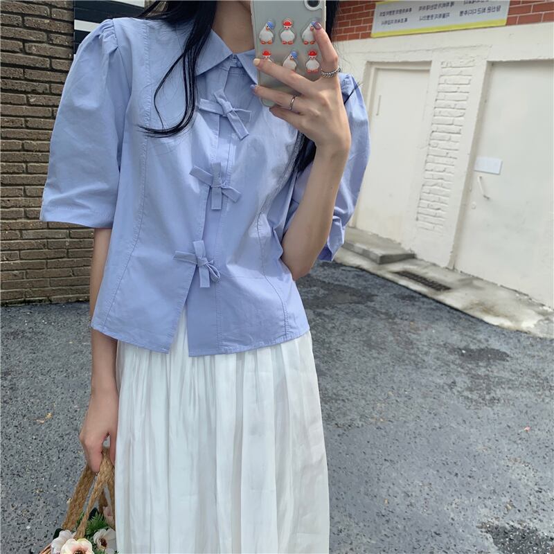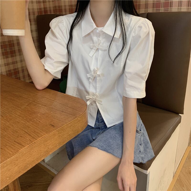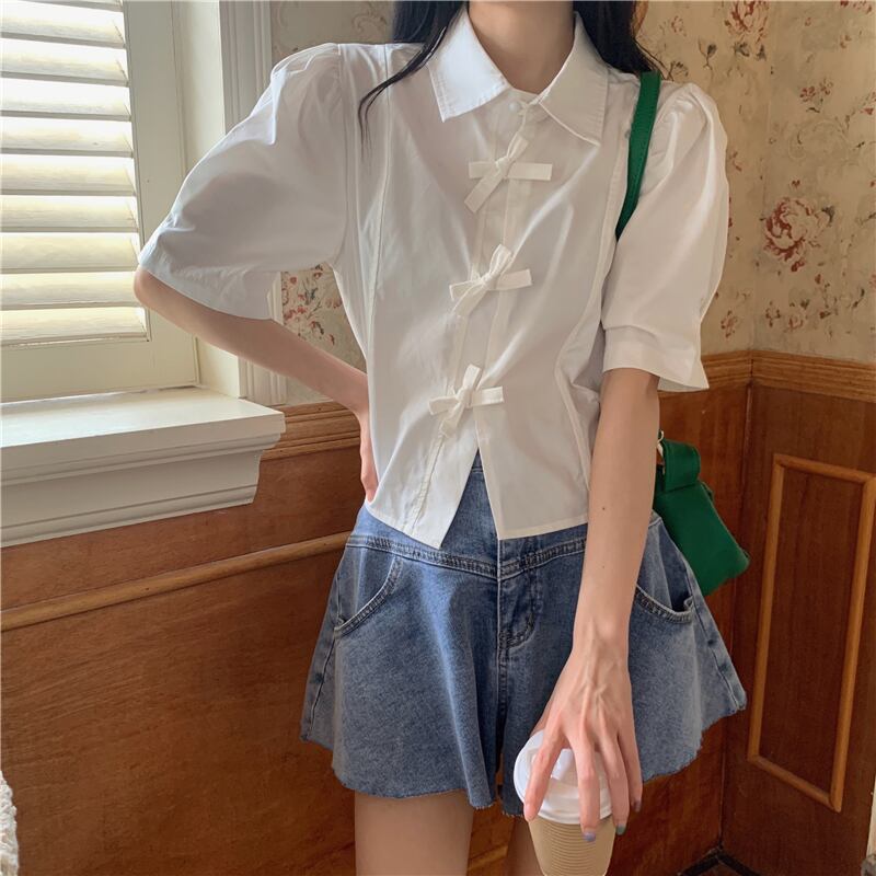 ホワイトシャツ サマースリーブルーズ薄手トップス 大人ガーリー スウィート キュート カジュアル 夏物 クレセントシティ22370191745