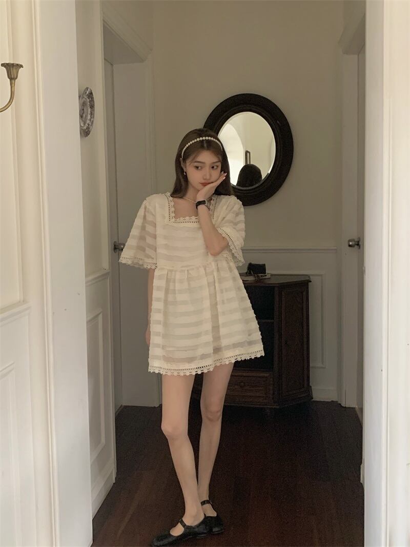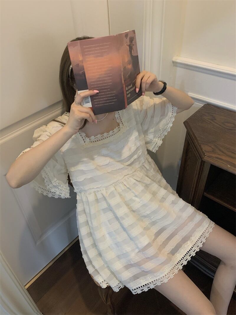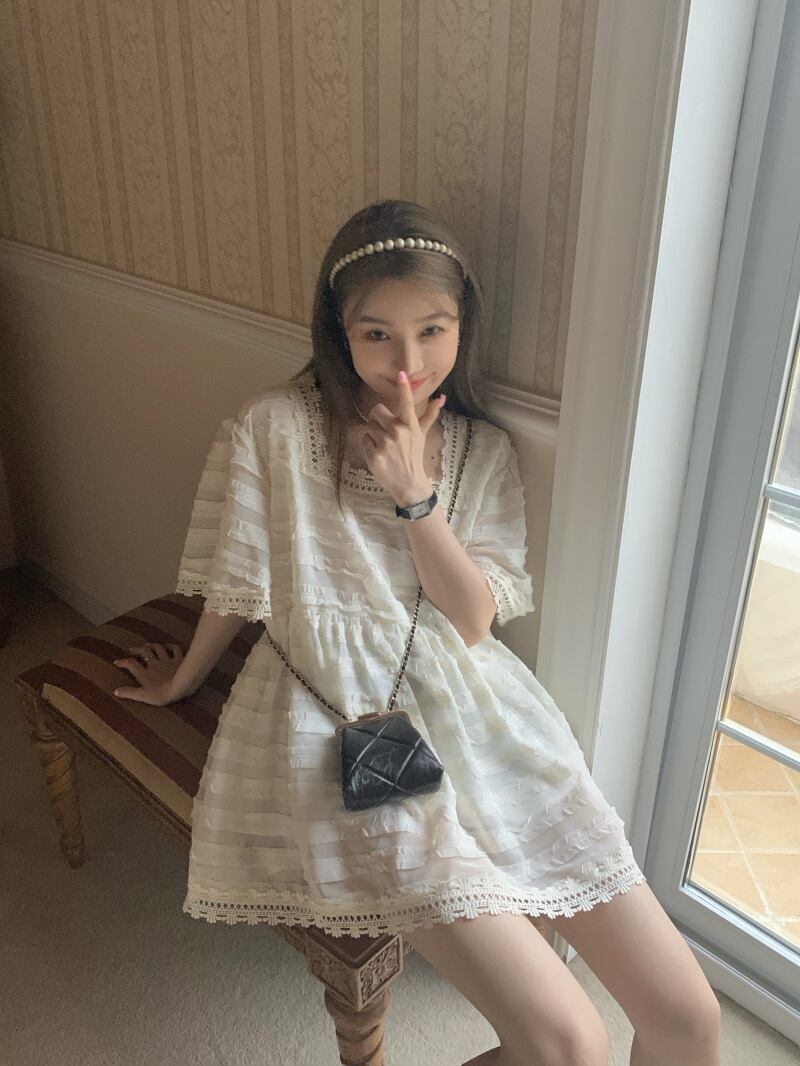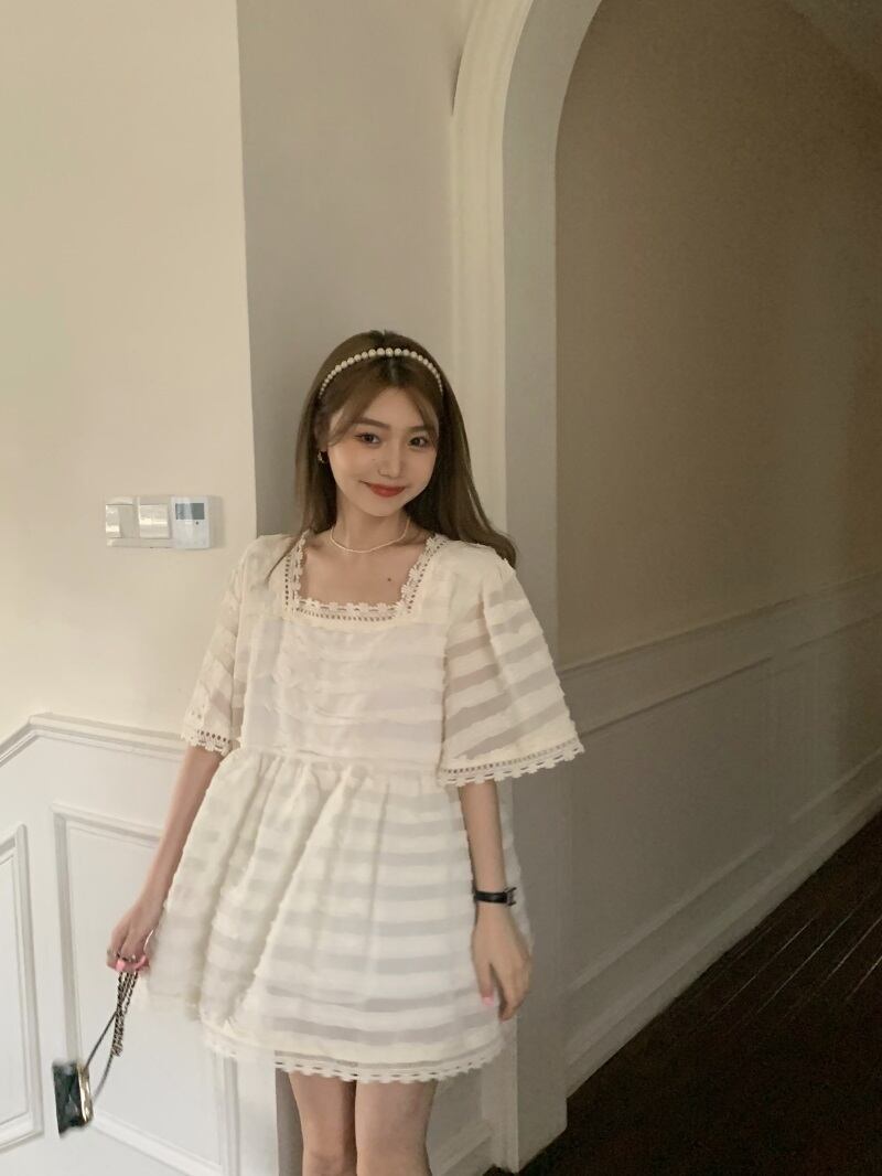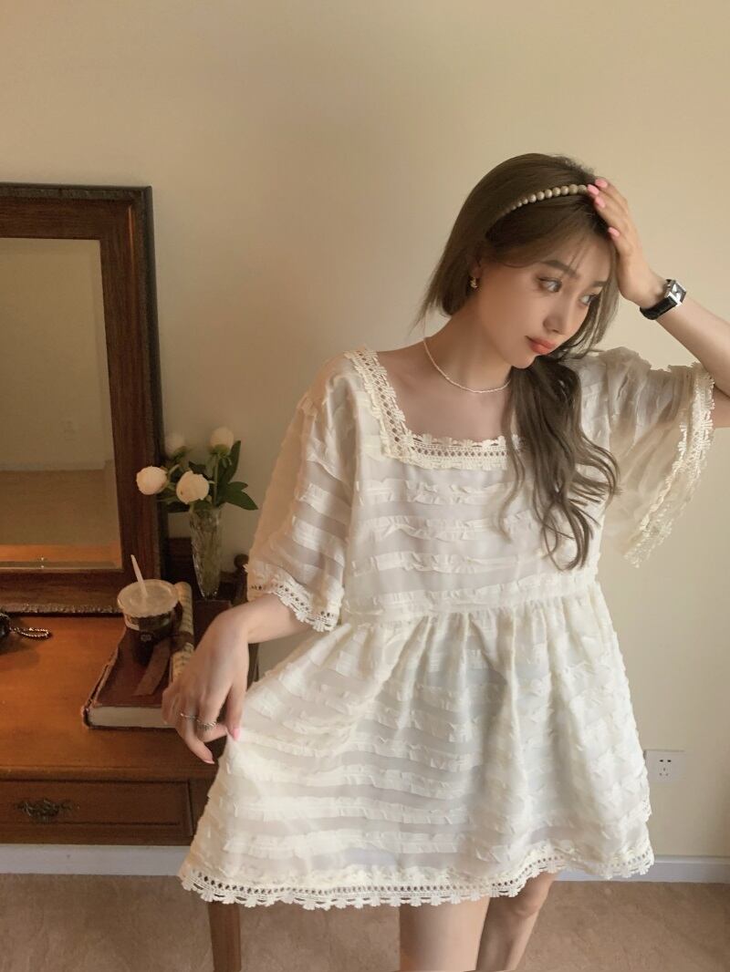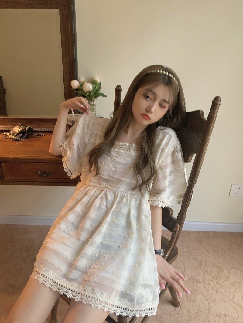 レースドレス サマーカラールーズスリムスカート 大人ガーリー スウィート キュート カジュアル 夏物 スクウェア クレセントシティ32436441149