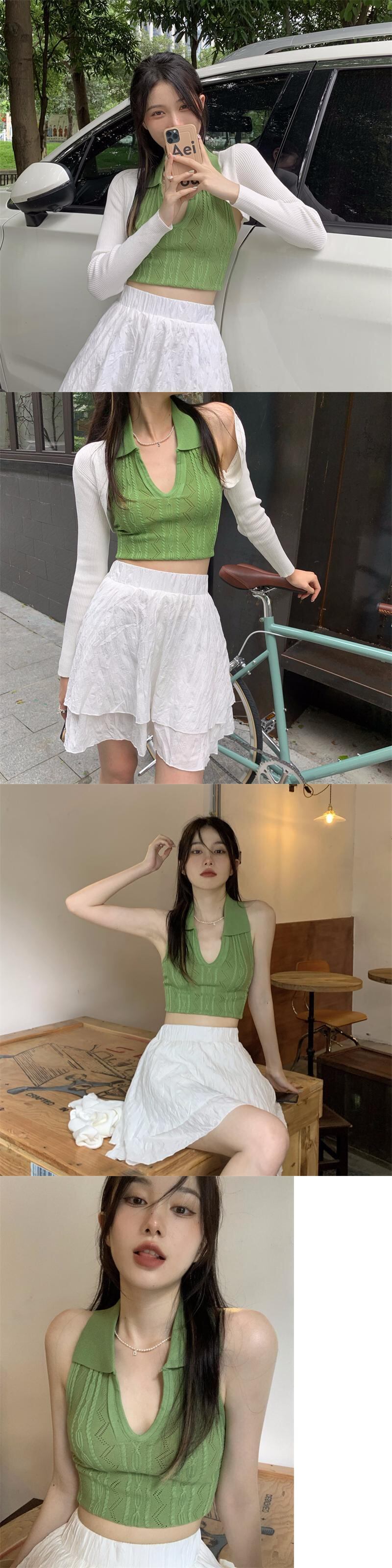 ホルターニットサマースタイルショートコート 大人ガーリー スウィート キュート カジュアル 夏物 クレセントシティ77925968331