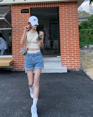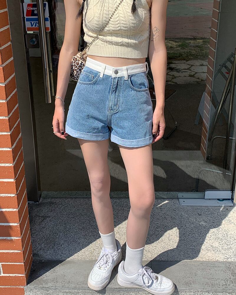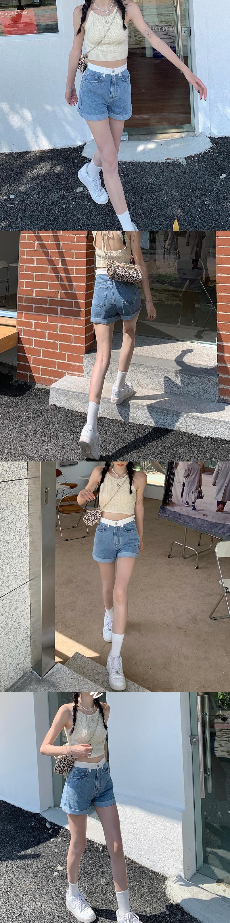 サマーハイウェストルーズ薄手パンツ 夏物 ショーツ ブルマー ステッチ クレセントシティ77227299017