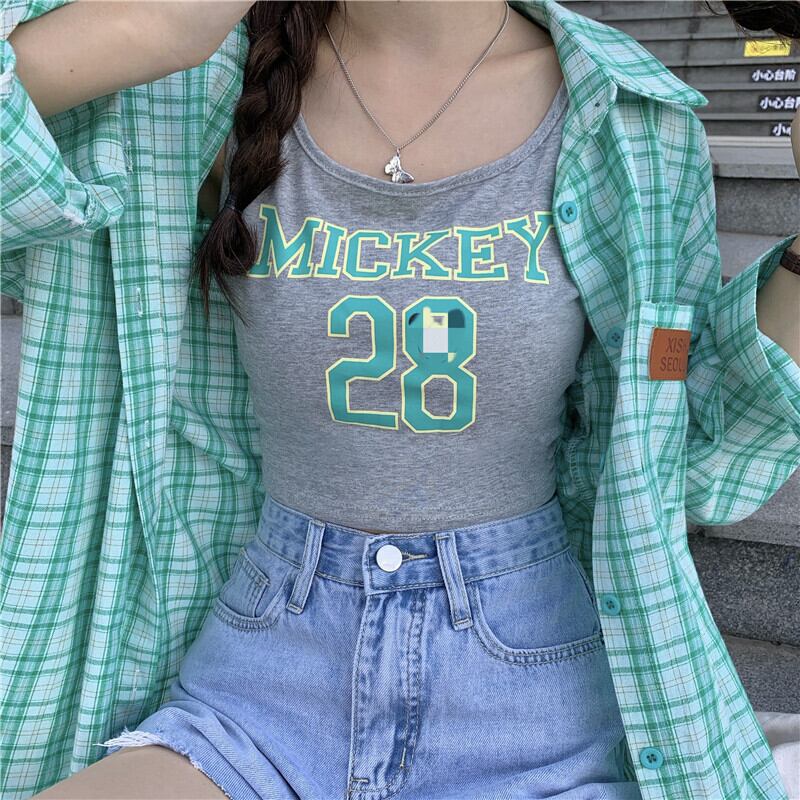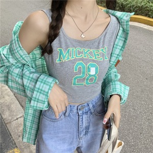 グレーレディースサマーシャツ ノースリーブスリムショートトップス 夏物 クレセントシティ6045992307