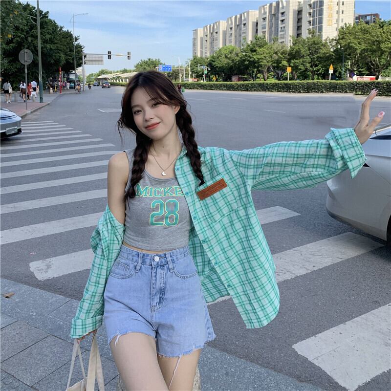 色:格子縞のシャツ,グレーのベスト