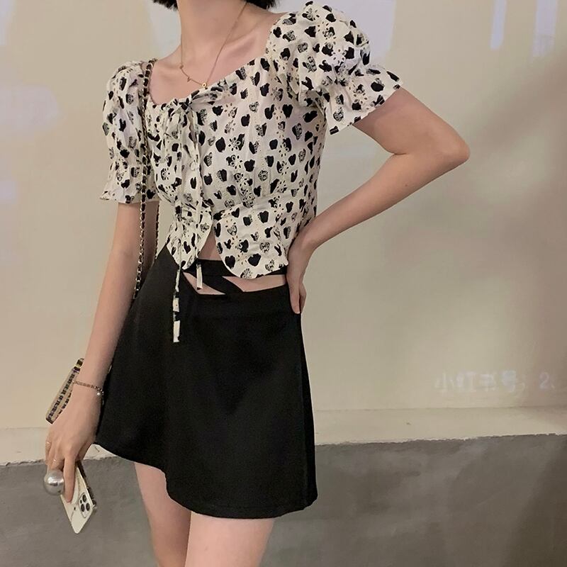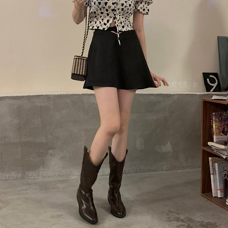 ブラックAラインスカート サマーハイウェストウェスト 夏物 クレセントシティ50494272262