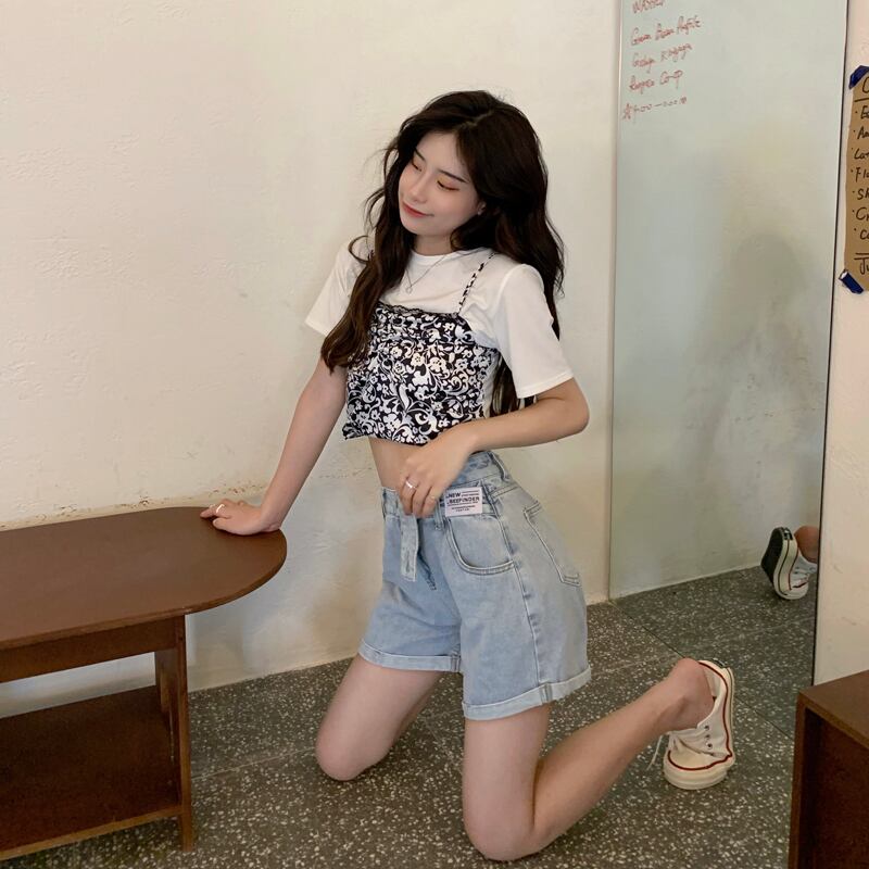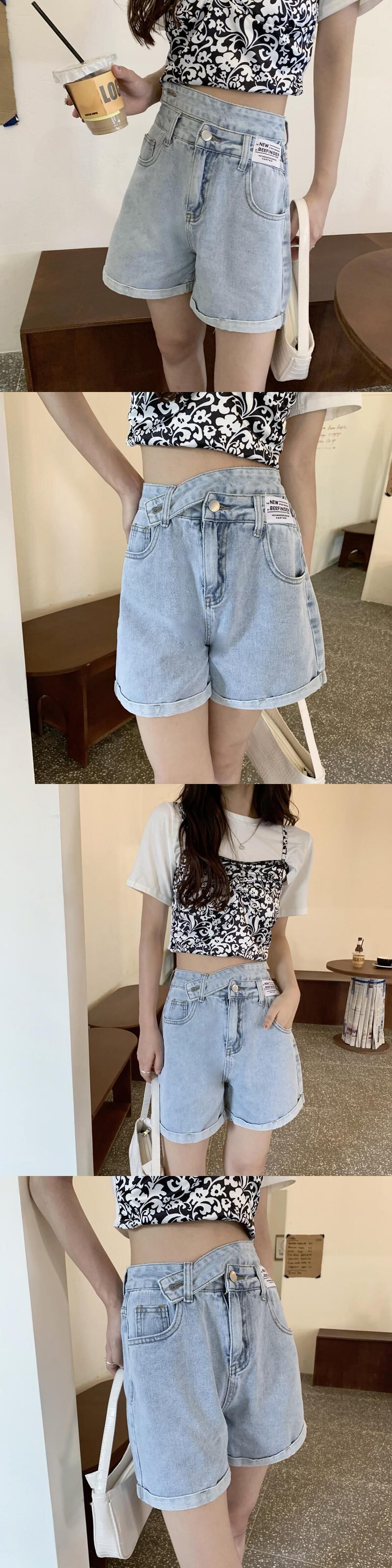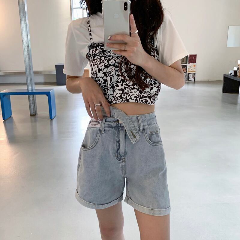 バックルハイウェストウェストショーツ サマーカラールーズ薄手ワイドレッグパンツ 夏物 ブルマー ワイドパンツ クレセントシティ29202704433