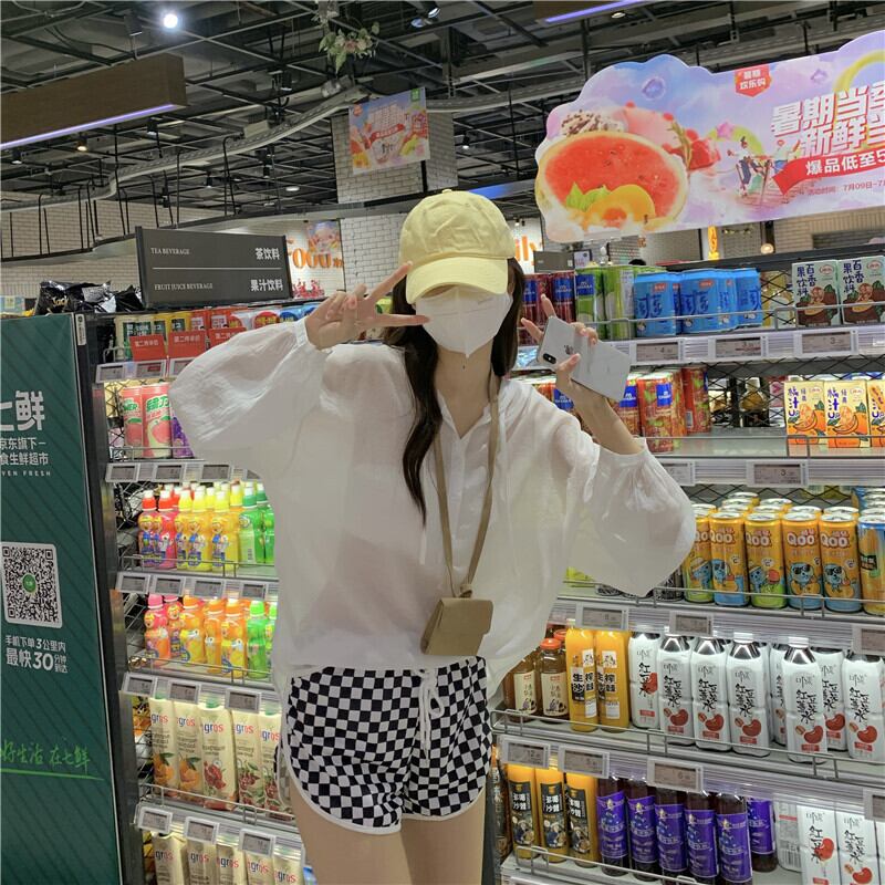 薄手フードジャケット レディースサマーソリッド カラールーズシャツ トップス ロング 夏物 ソリッドカラー クレセントシティ8290667382