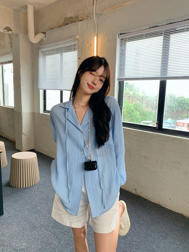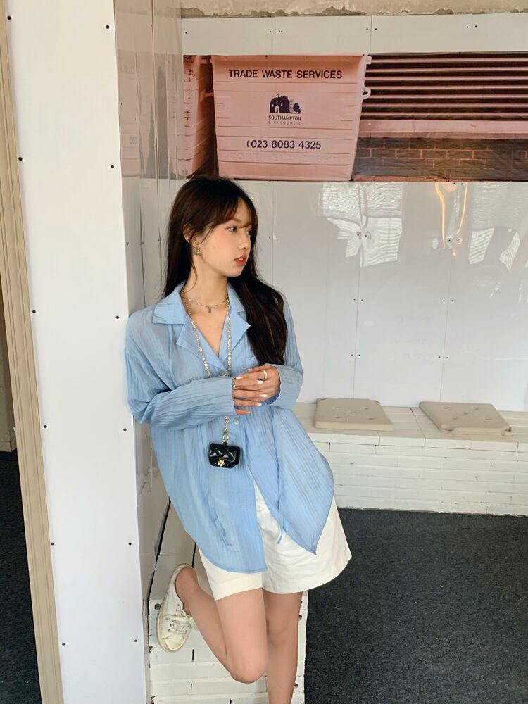 ブルーシャツ サマーカジュアルルーズ薄手 ロング 夏物 クレセントシティ93251182335