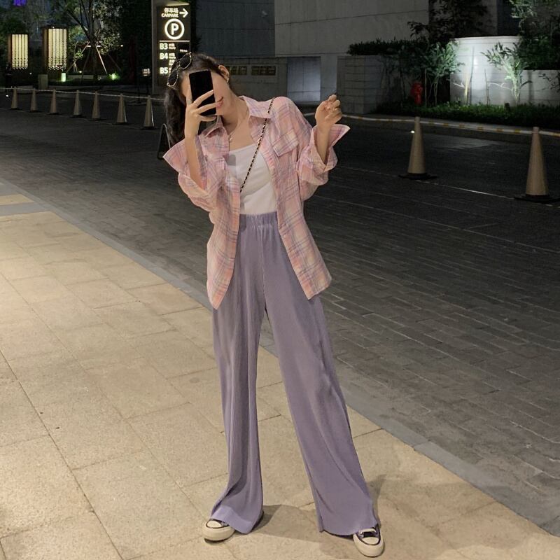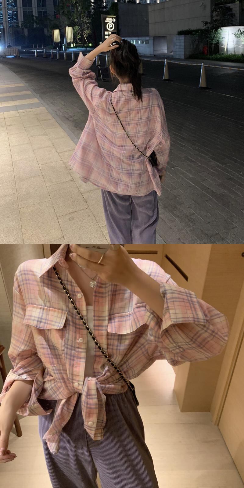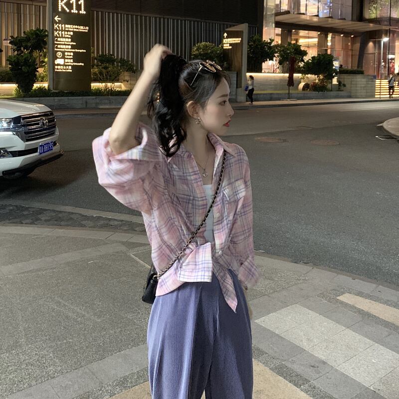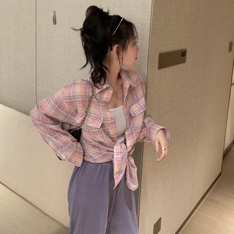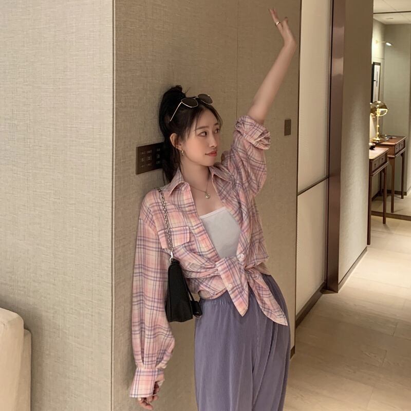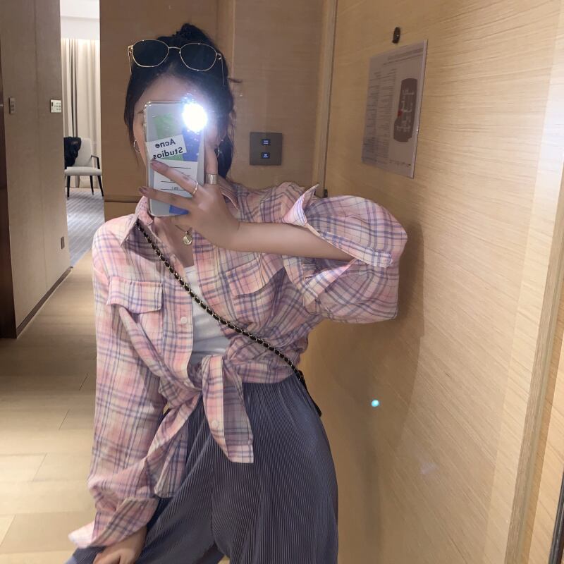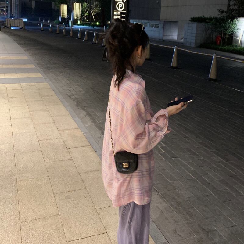オータム格子柄シャツ ルーズカジュアル薄手ジャケット ロング 秋物 クレセントシティ67872155360
