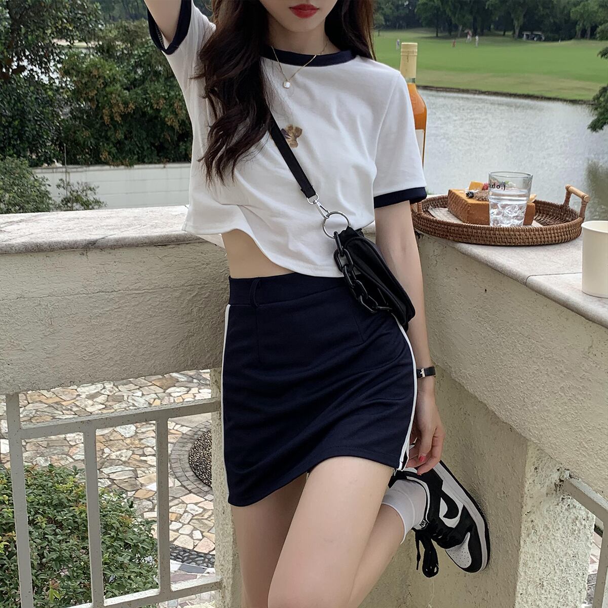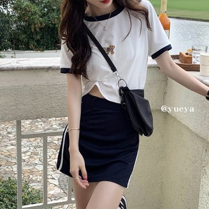 サマー薄手Tシャツ ストライプウェストショートスカート 夏物 クレセントシティ13013846840